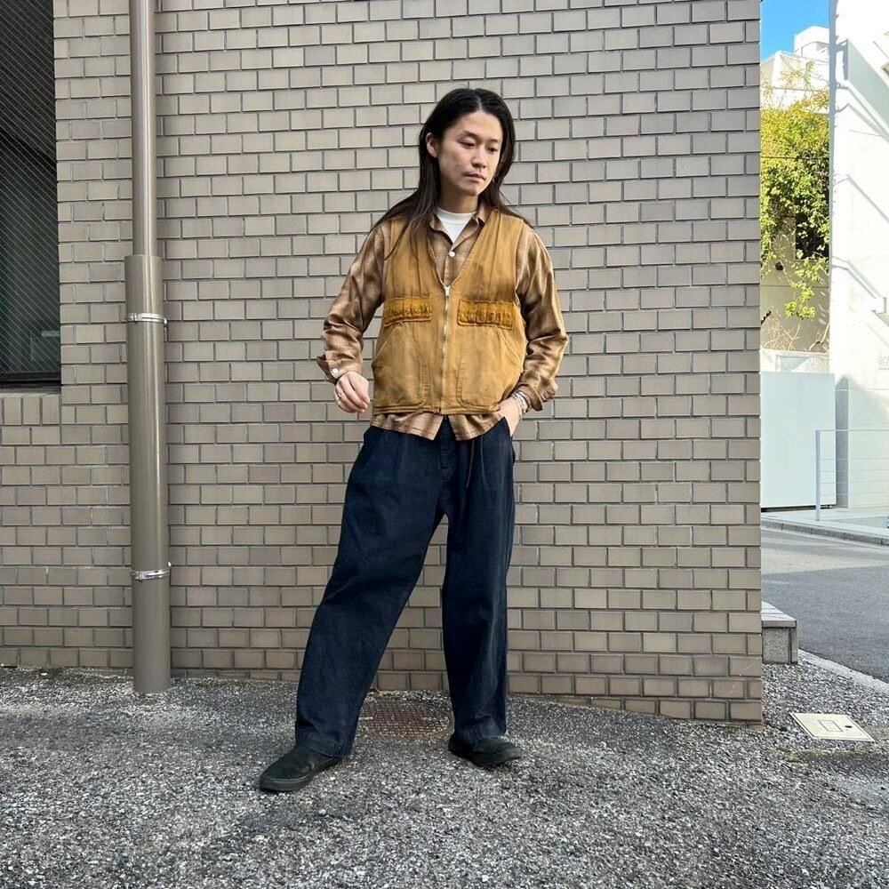 A sporty zip-up hunting vest from the 60s. The dirty khaki color has a nice feel to it. It goes well with layered styles, and the storage capacity is outstanding when you start wearing lighter clothes. Its a great vintage item that is practical from spring to summer.