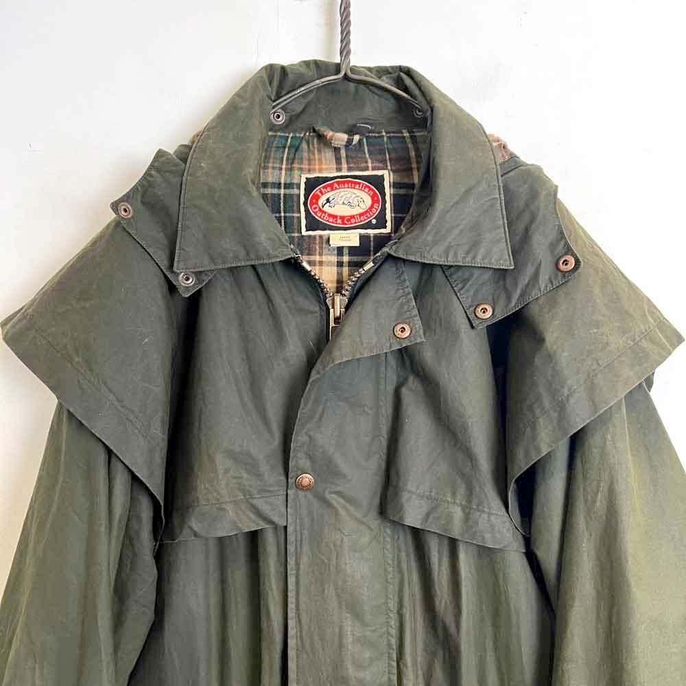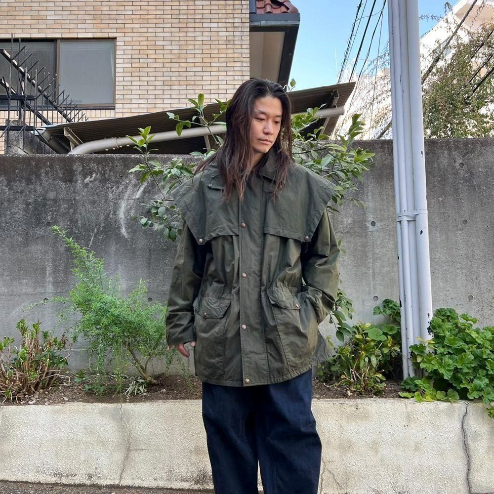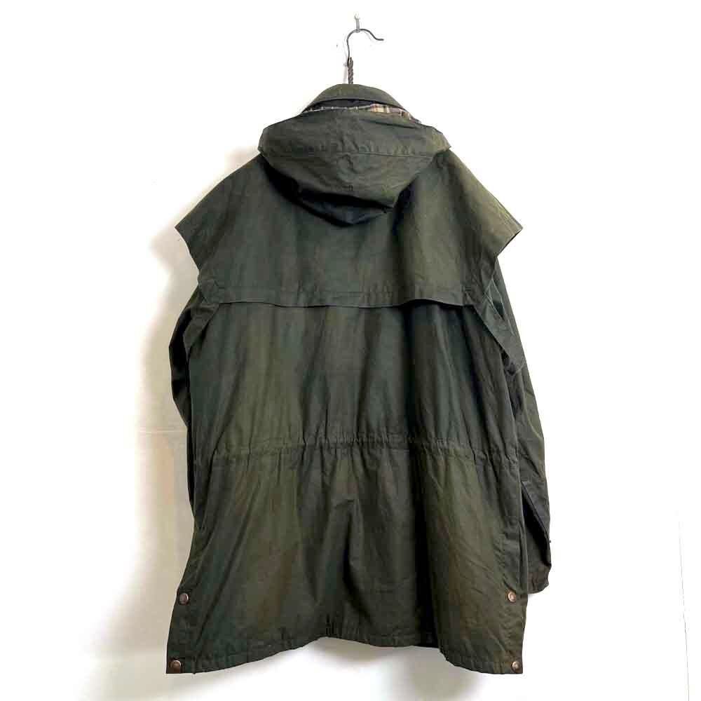 This 90s oilskin jacket has a unique design that is integrated with the cape. It is lighter than you would imagine and is perfect as a spring jacket. It is comfortable to wear and does not have the unpleasant smell that is common with vintage oiled jackets. It has a good, loose fit.