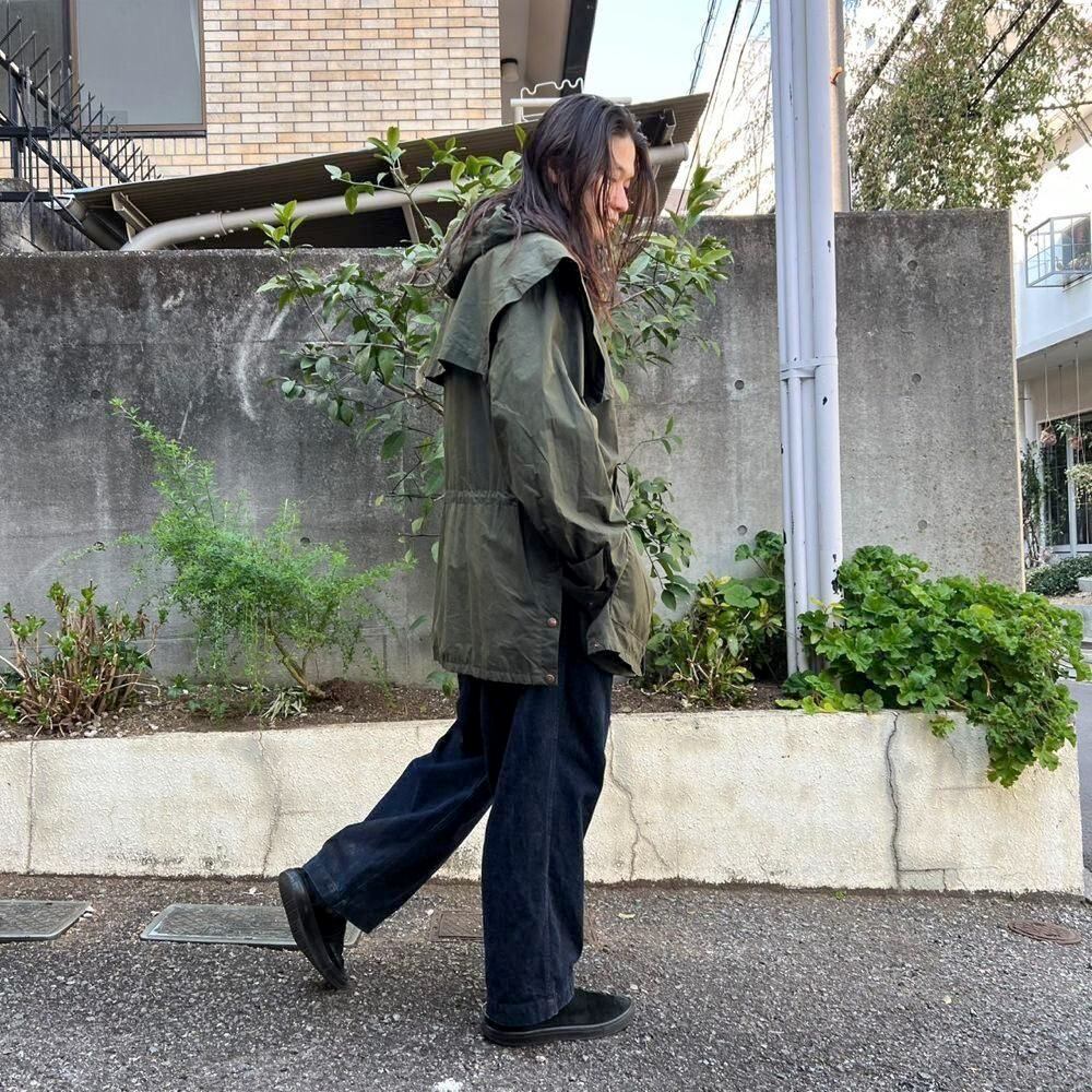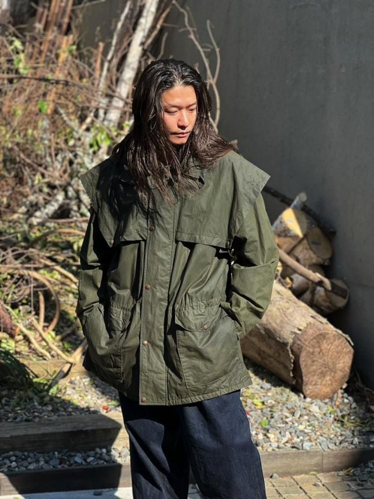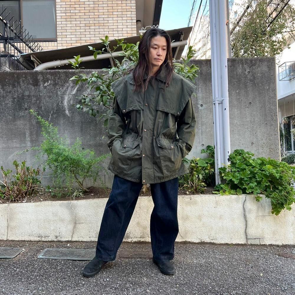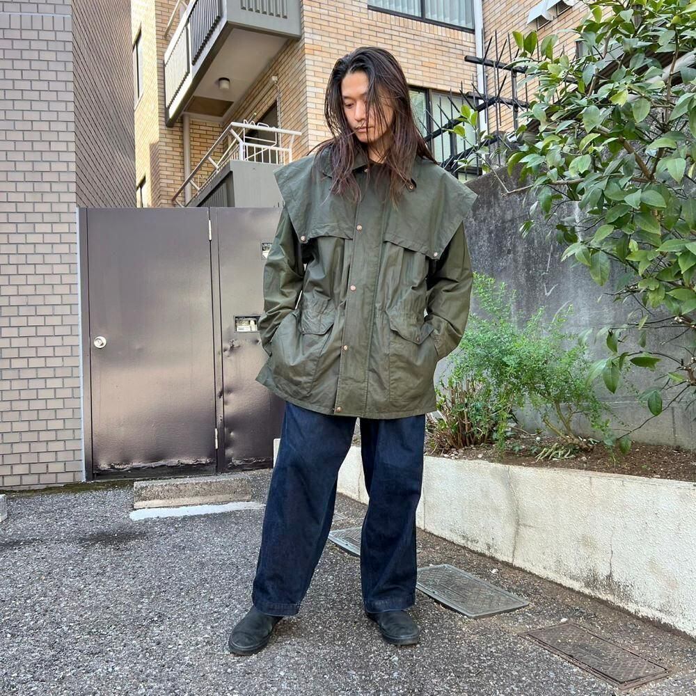 This 90s oilskin jacket has a unique design that is integrated with the cape. It is lighter than you would imagine and is perfect as a spring jacket. It is comfortable to wear and does not have the unpleasant smell that is common with vintage oiled jackets. It has a good, loose fit.