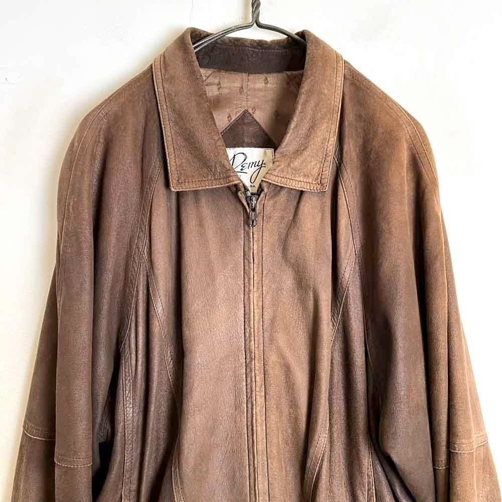 80s Lamb Leather Nubuck Jacket Made of brushed nubuck leather with a very smooth texture, it is so light you wouldnt believe its leather, making it the perfect light outerwear for spring. A simple drizzler jacket type design that is easy to match with other items. A vintage leather jacket with a good silhouette and a roomy fit. *One snap button on the left sleeve cuff is missing, but there is no problem with wearing it.