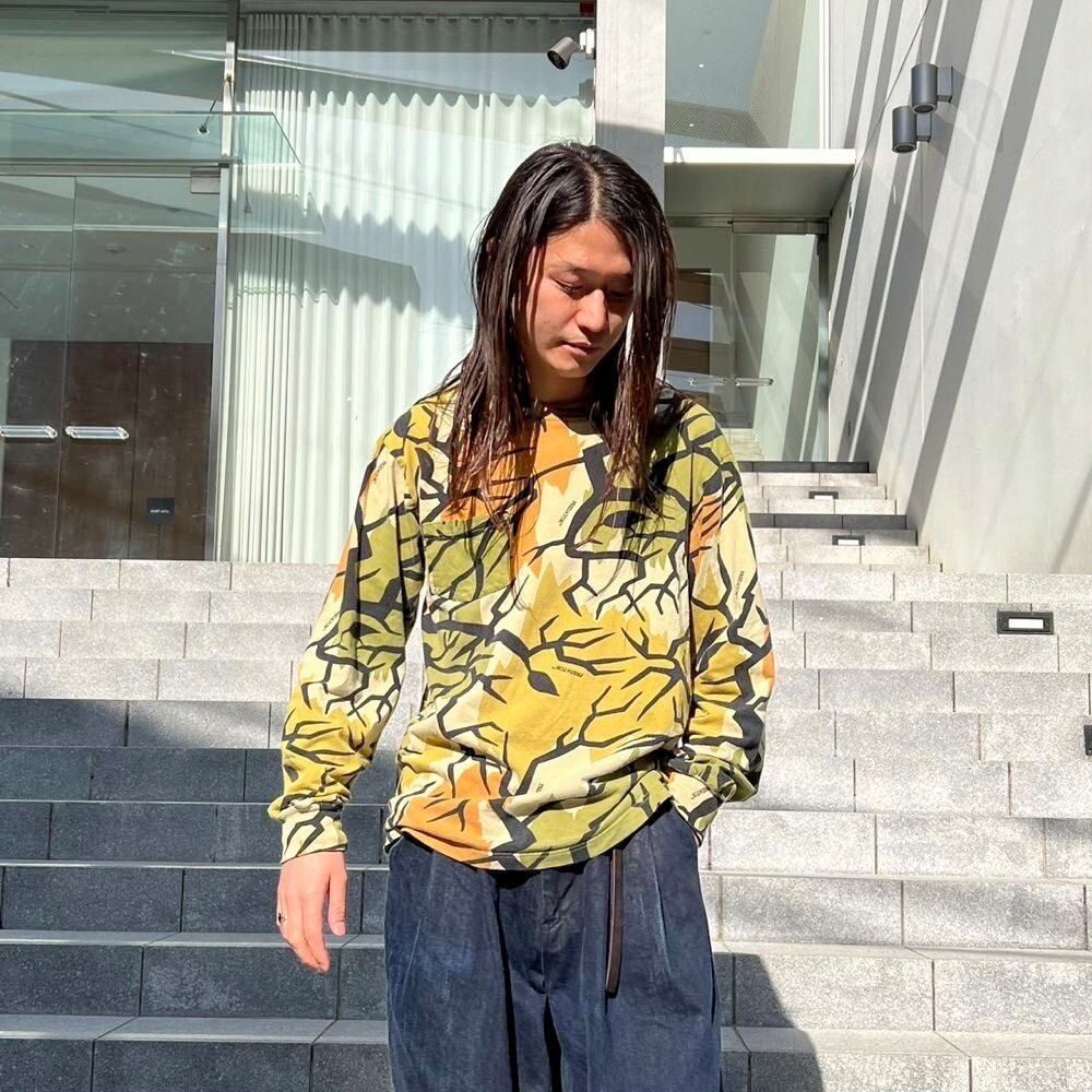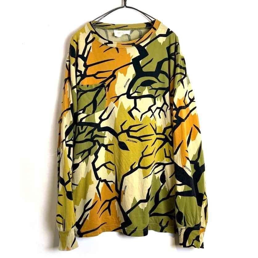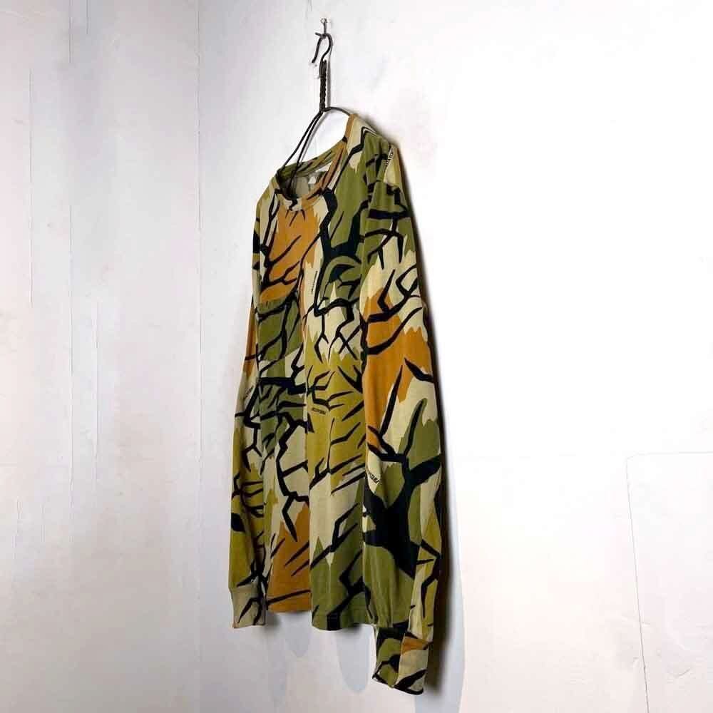 A long sleeve pocket T-shirt of the popular 90s Predator with an avant-garde pop camouflage pattern. It is made of soft 100% cotton fabric and feels good against the skin. The size is not specified, but it is about M to L.