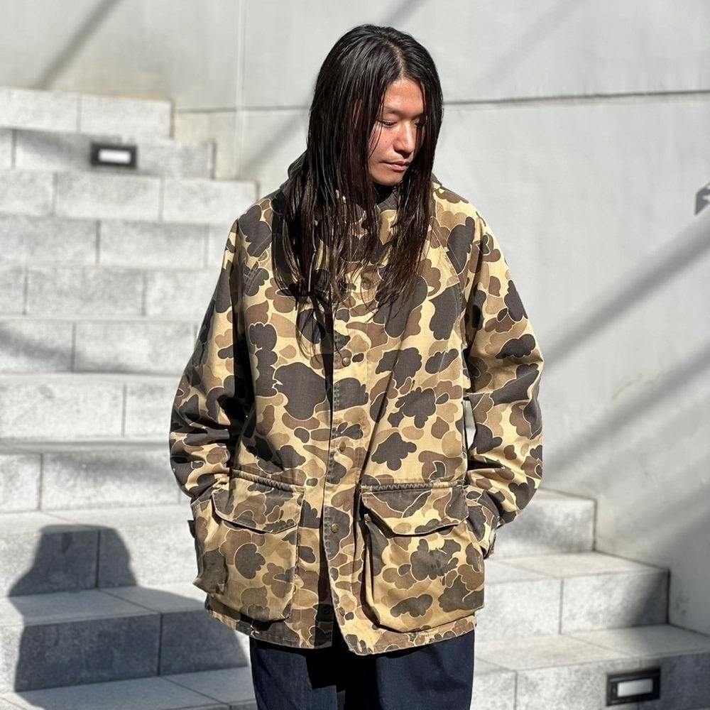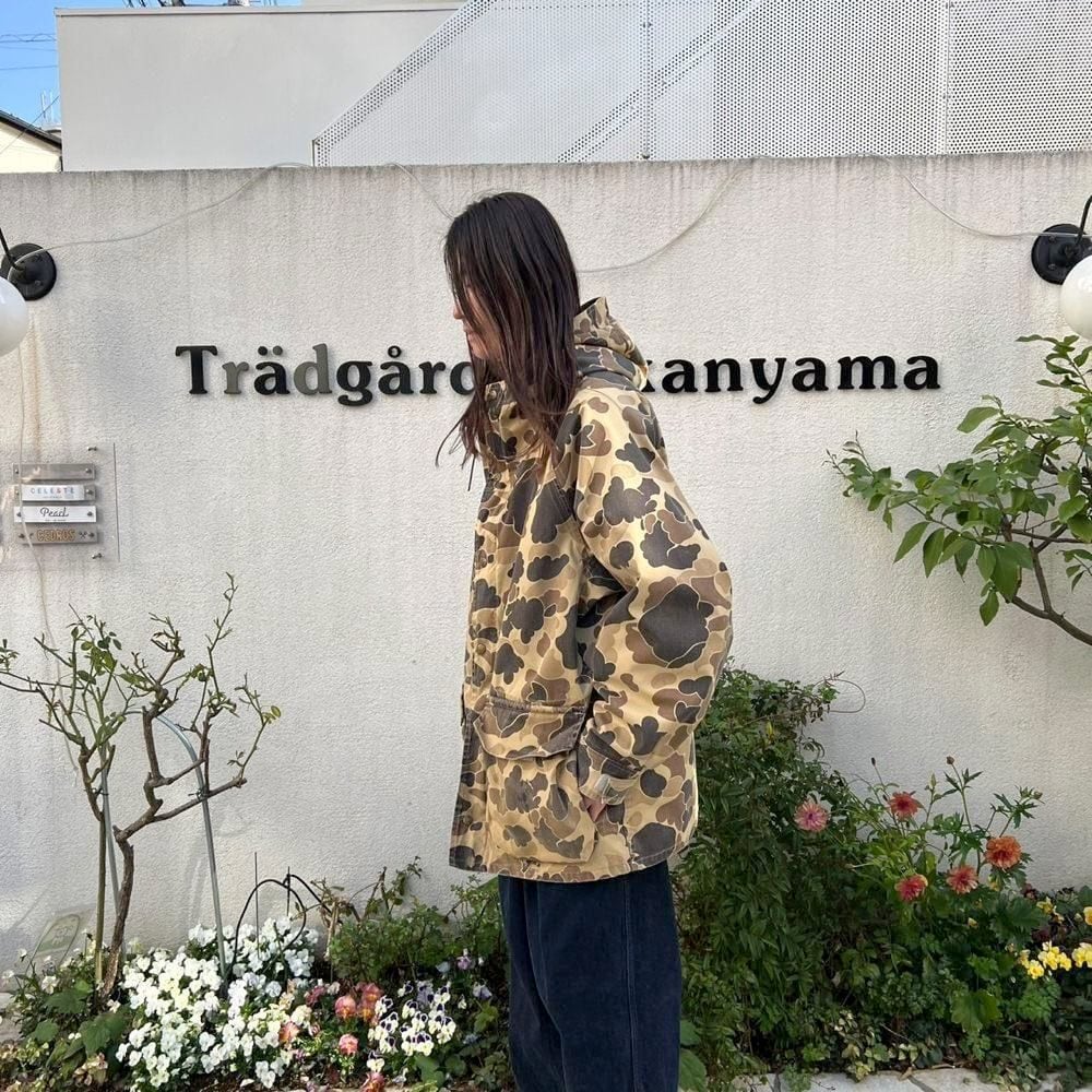 80s Columbia Duck Hunt camouflage parka. The camouflage color faded over time gives it a very nice look. The size is just right and the silhouette is excellent. It is made of waterproof and breathable Gore-Tex nylon, so it is also functional.
