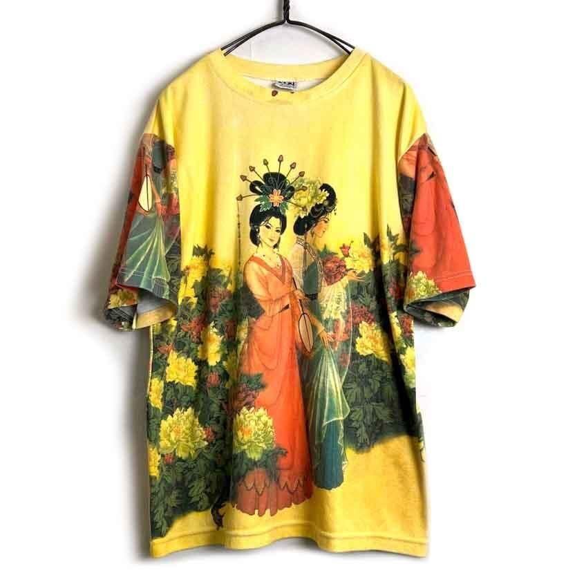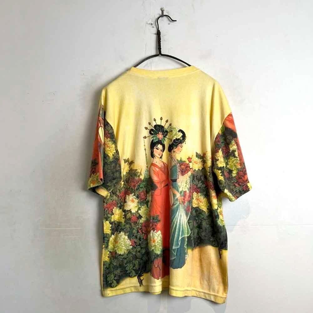 This vintage t-shirt from the 80s has an exotic oriental mood with a double-sided print that makes a great impact when worn alone. Its a great piece for those looking for a slightly different printed t-shirt. Its a comfortable fit with just the right amount of room.
