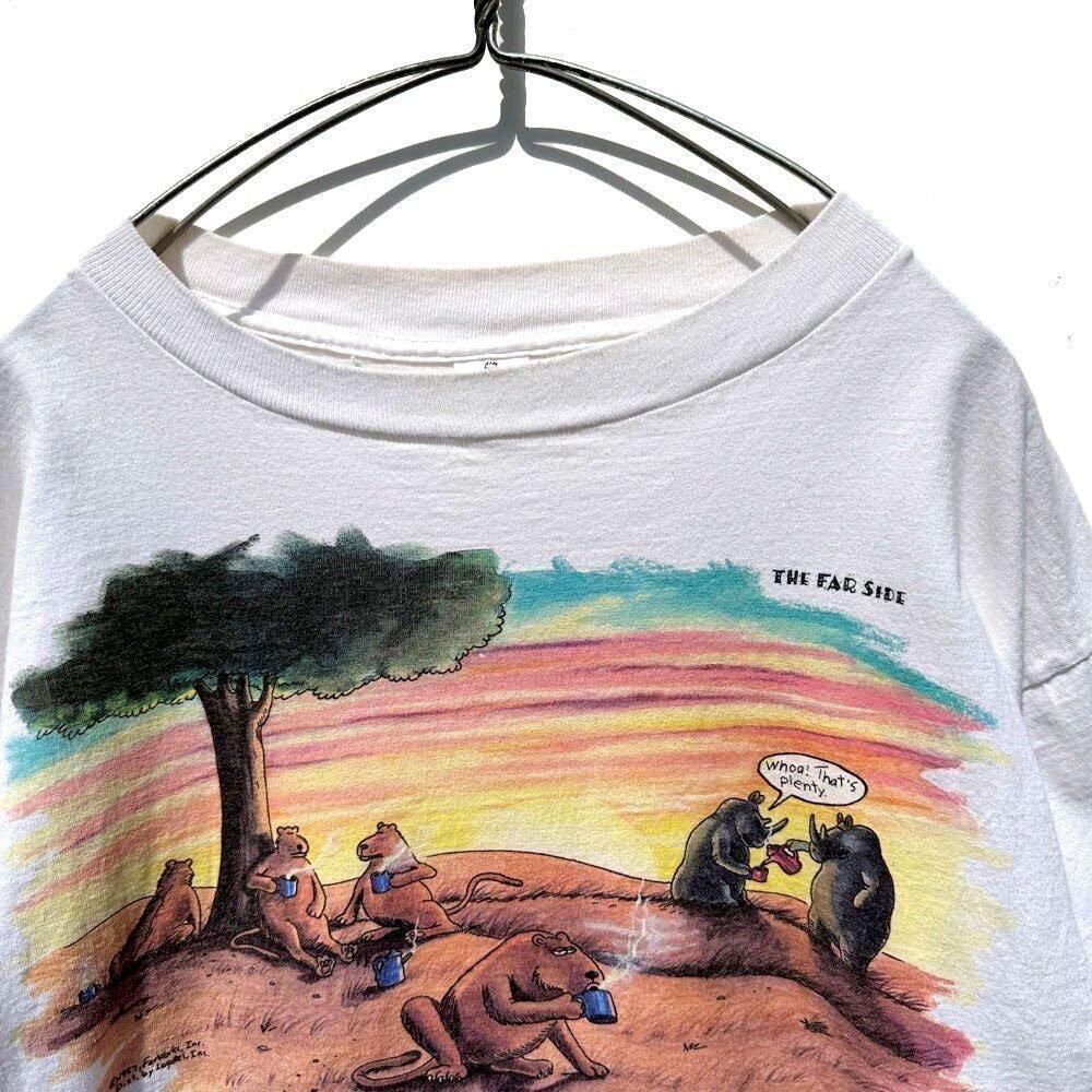 1987 Farworks,Inc Dist By Logotel Inc. Copyright included, The Far Side original body made in the USA, single stitching on sleeves and hem.