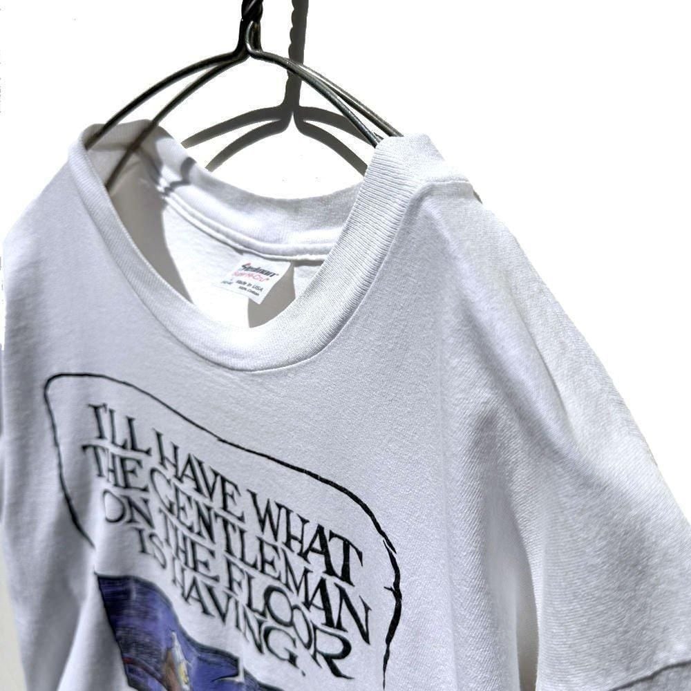 Includes 1986 IRIBUNE MEDIA SERVICE copyright, USA-made Stedman body, single stitching on sleeves and hem.