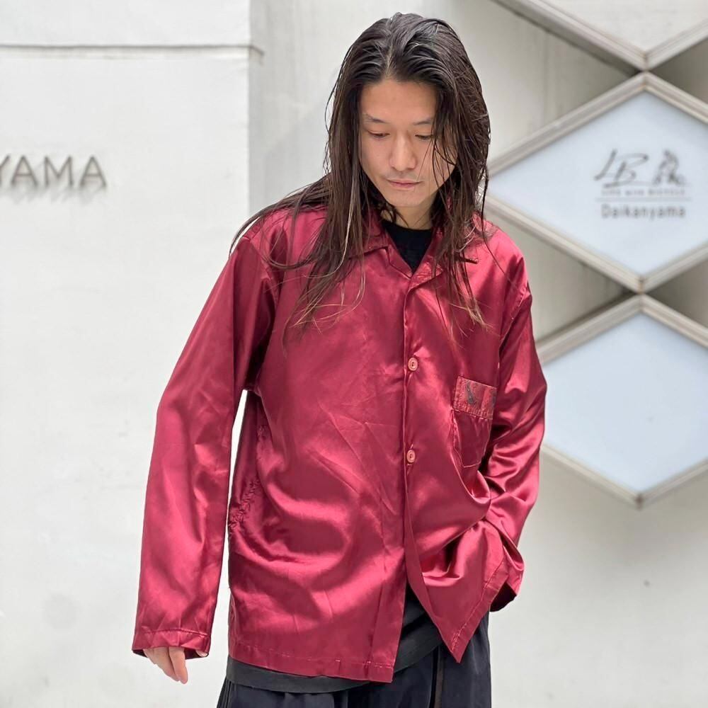 This pajama shirt was made in Turkey in the 90s. It has a dull burgundy color with a subtle design and the paisley pattern on the collar and pockets is a nice addition to the silhouette.