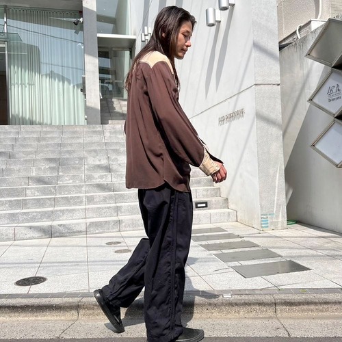 50s H BAR C rayon western shirt. Earthy brown and beige two-tone color yoke and embroidery on the collar are modest and easy to match.
