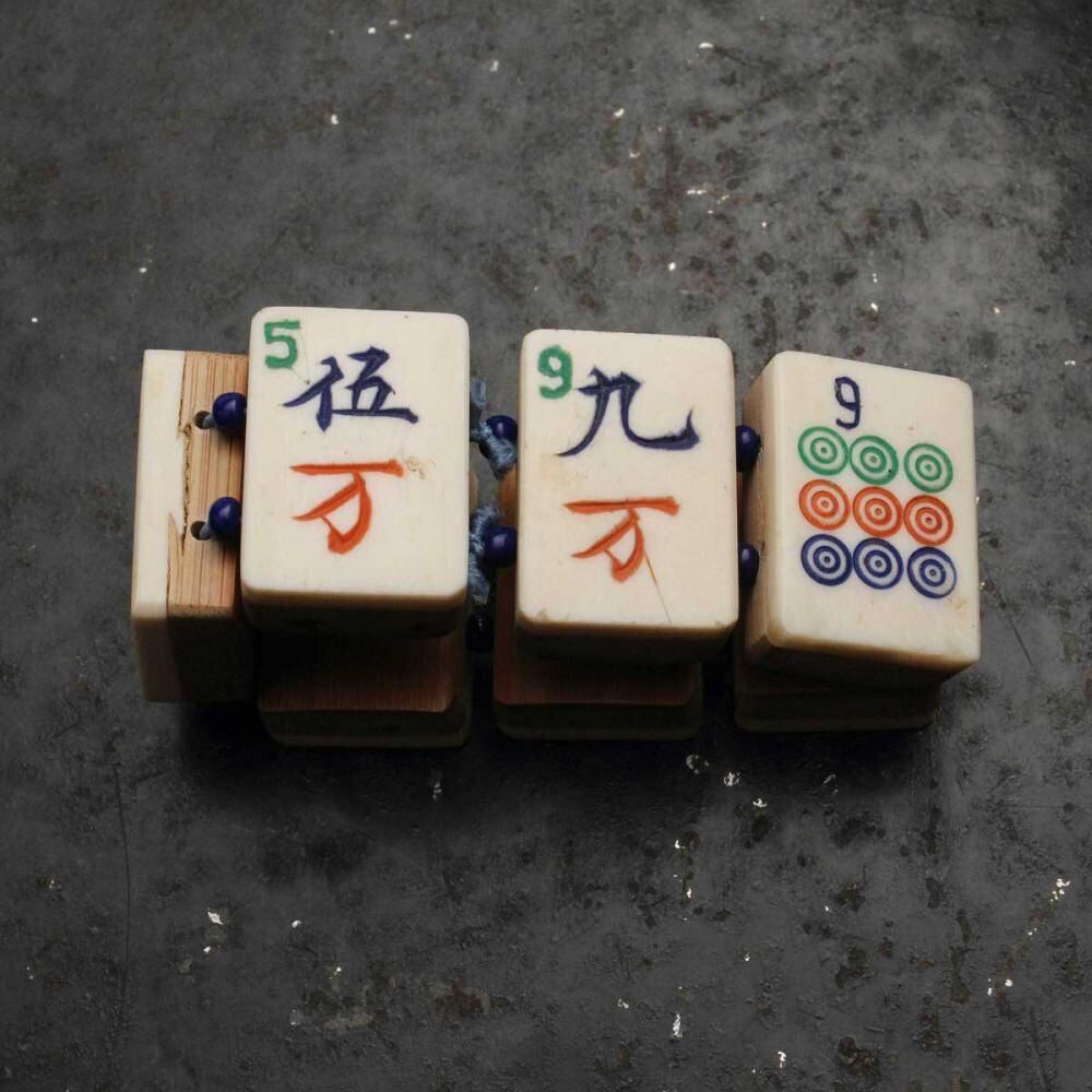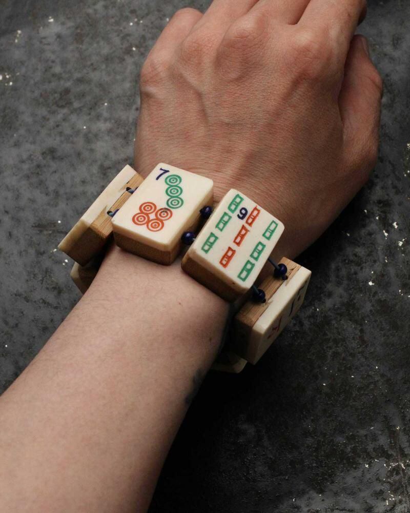 This is a vintage bracelet that is probably made of rare genuine ivory or other bones and bamboo. It is made of precious ivory or cow bone, which was banned in the 1970s, and has a soft, natural texture that is pleasant to the touch. The design features mahjong tiles, making it a charming item that is likely a gambling talisman or souvenir. It features a high-quality, elegant ivory look and a natural, soft texture that has aged over time. It is a rare item that has not been seen at all in recent years. It is made of rubber, so it is easy to put on and take off, and is light to wear. Please check the photos and understand the characteristics of vintage items before purchasing.