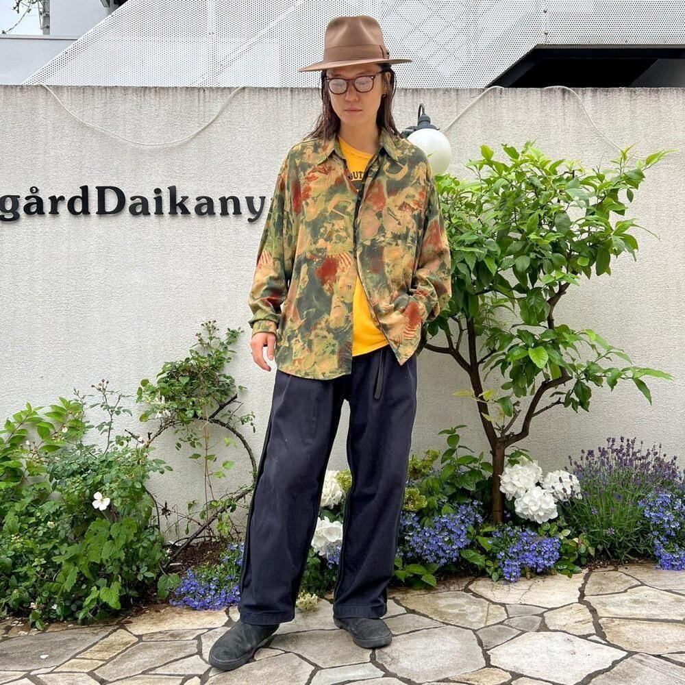 80s art pattern rayon shirt. At first glance it looks like camouflage, but when you look closely you can see the art pattern of a portrait painted with a fantastical touch like Monet. The sophisticated colors make this a very nice piece.