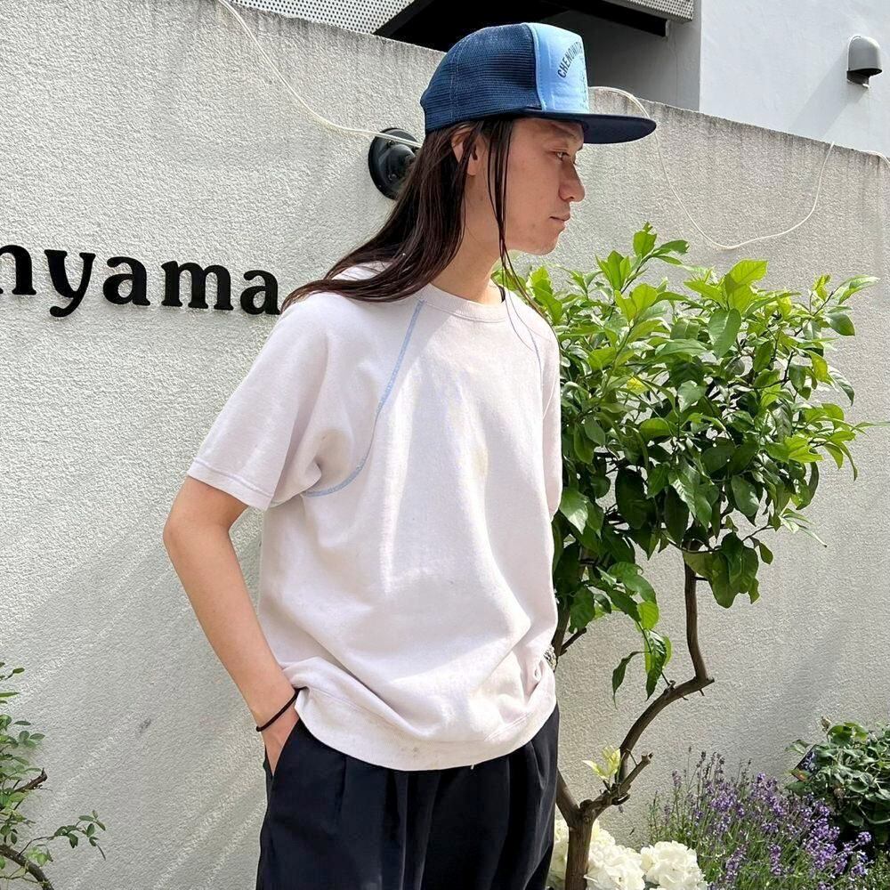 A short-sleeved sweatshirt from the 80s. It has a faded pink color that is almost white, and the vintage-like dirt gives it a nice atmosphere. It is made of a worn cotton x acrylic sweatshirt fabric. It is a vintage short-sleeved sweatshirt with a roomy fit.