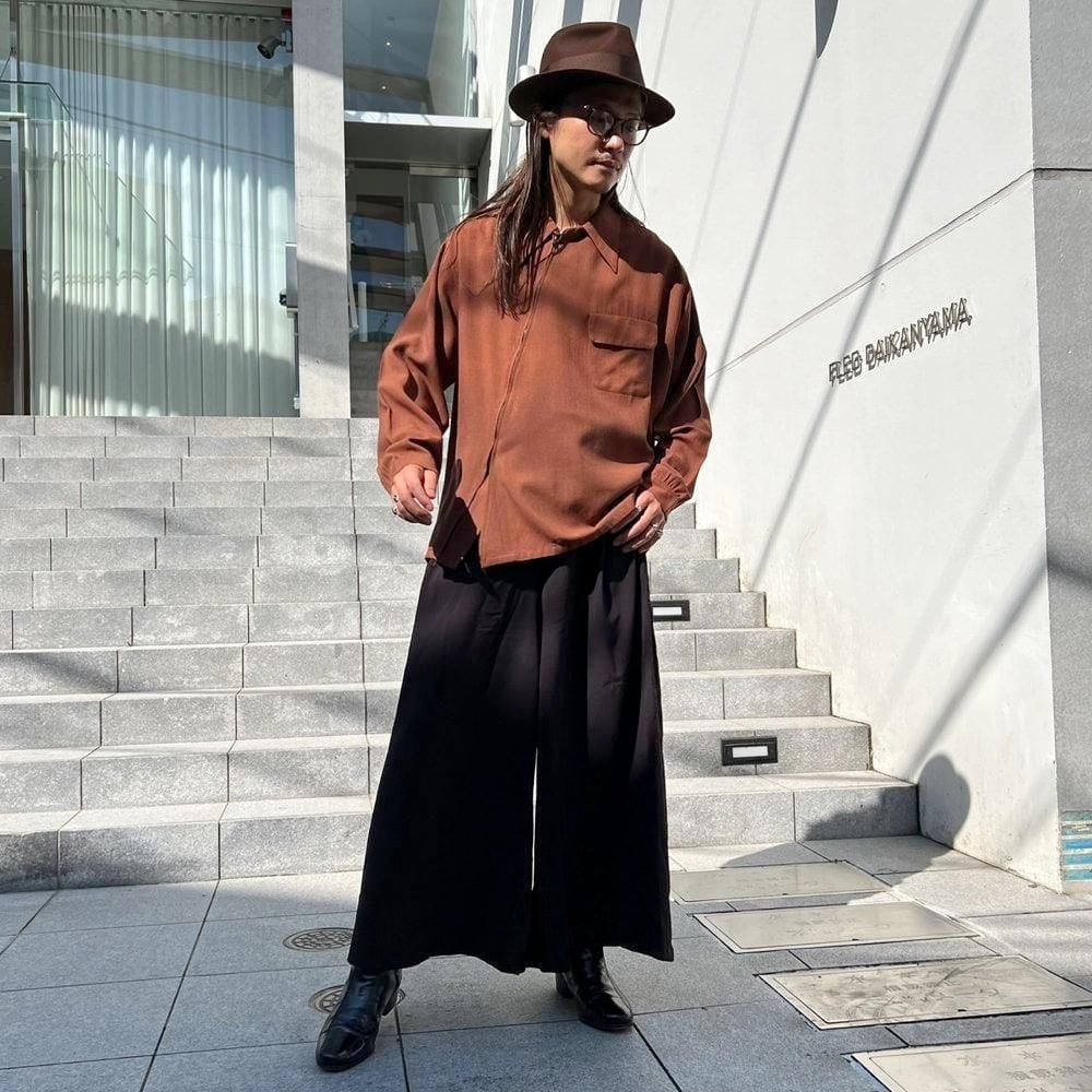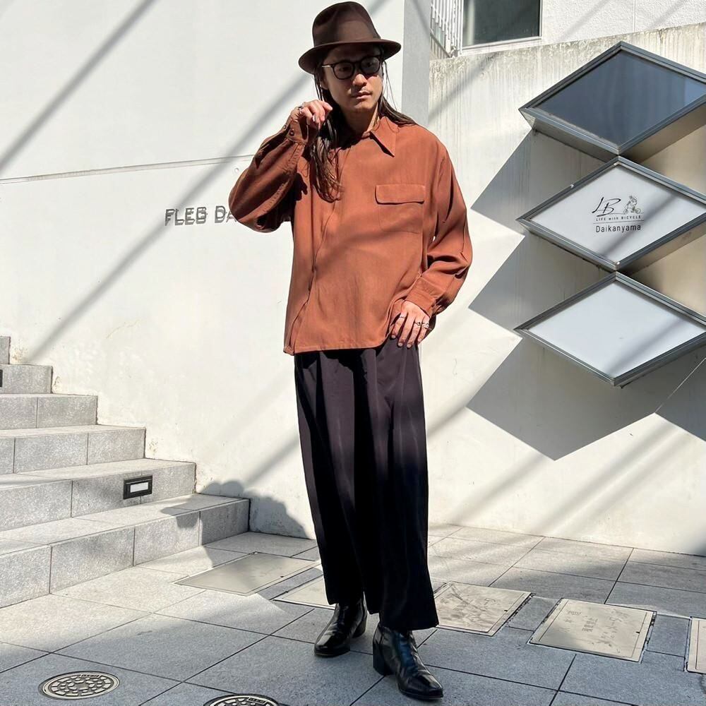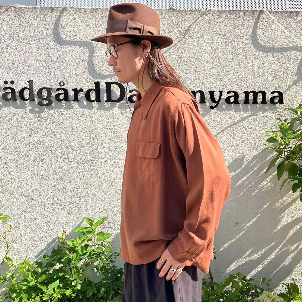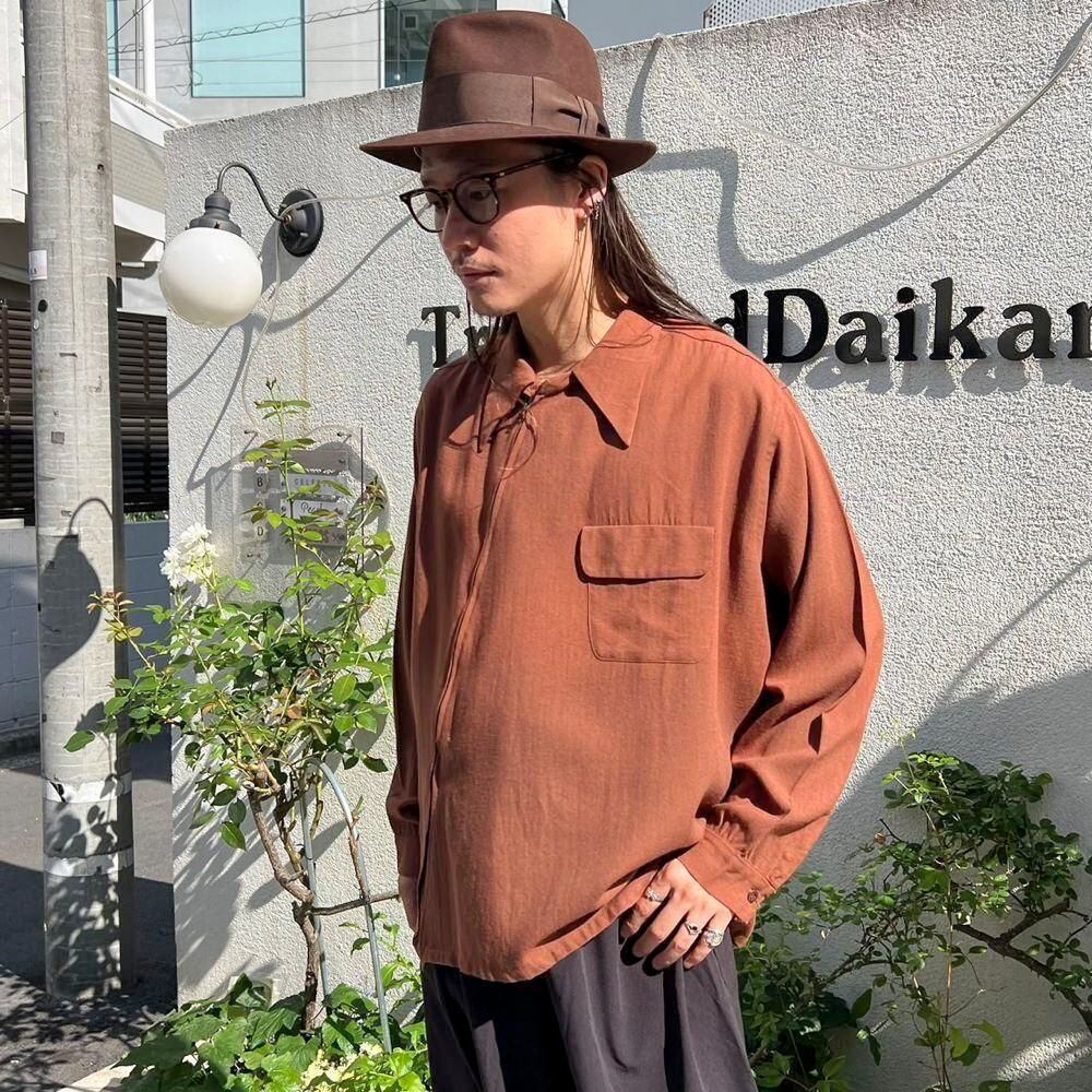 1940s Mohawk Sportswear zip-up wool shirt. The front zipper is placed diagonally, creating a cutting-edge asymmetrical design. The deep terracotta brown color also gives this piece a nice atmosphere. The 100% wool fabric is soft, fluffy, and light. The size is L, and it has a great silhouette with a relaxed fit that does not shrink.