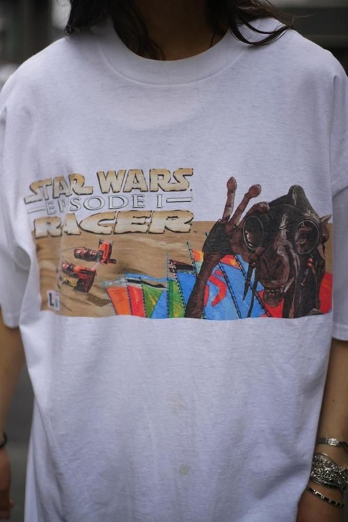 Made in 1999, this is a promotional T-shirt for a racing game that was released in the same year to coincide with Star Wars Episode 1.
