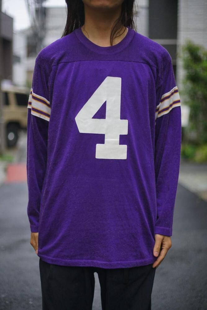 The unique jersey fabric has a soft, dull sheen and a silky feel, and the silky texture makes it stress-free to wear. The purple body and impressive numbering patches add to the retro atmosphere.