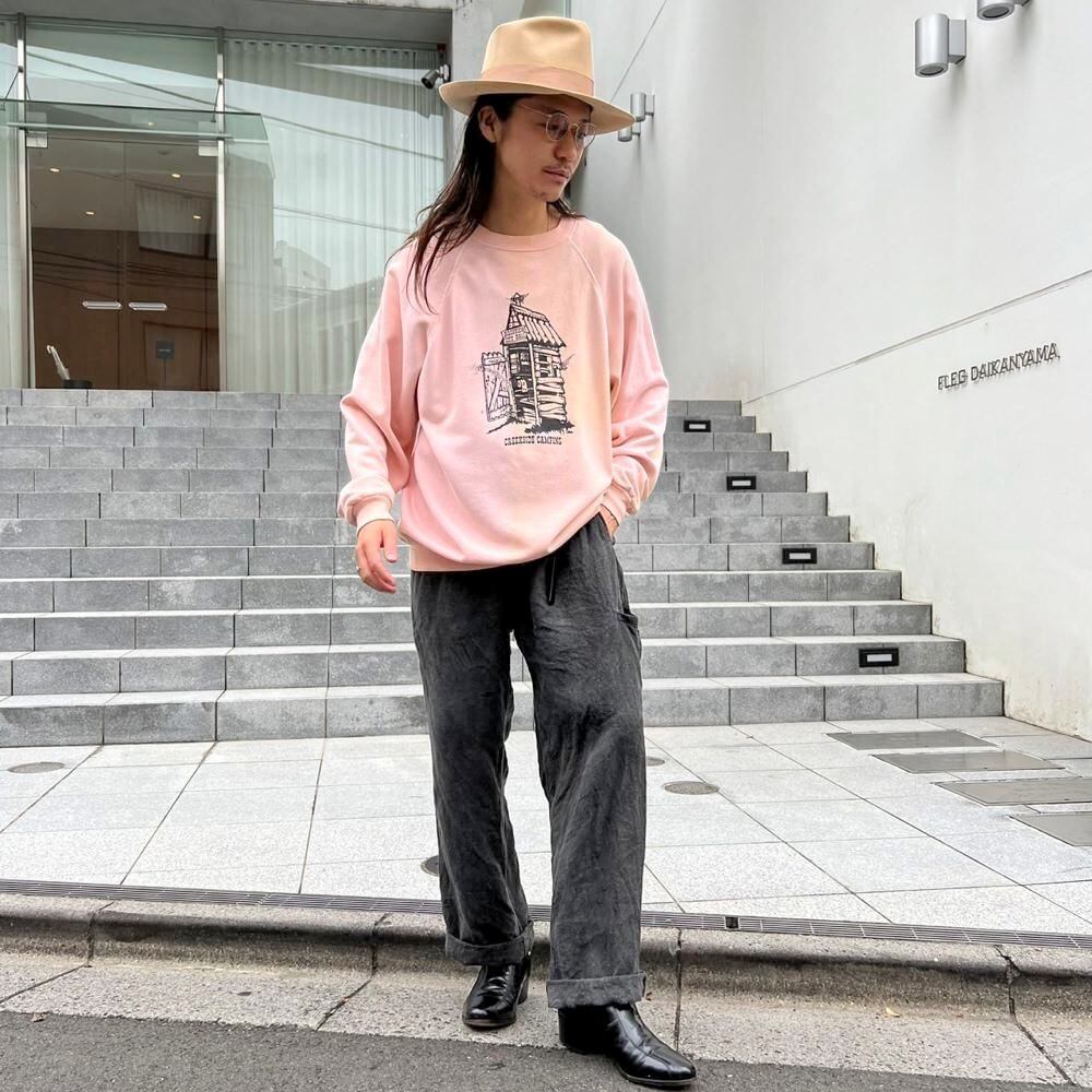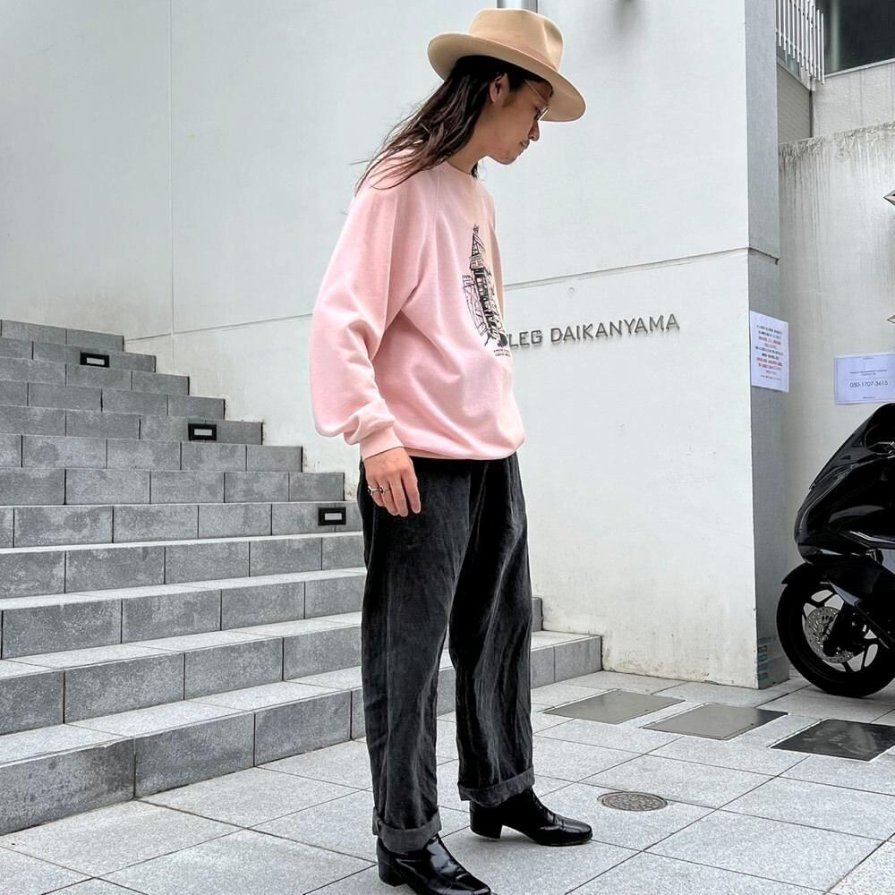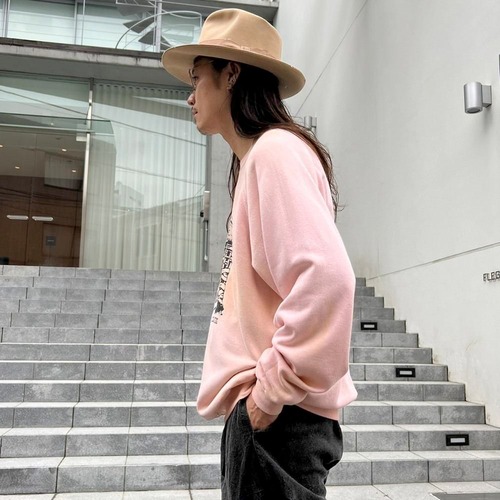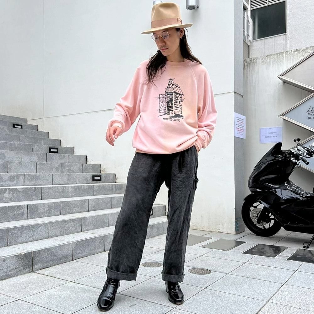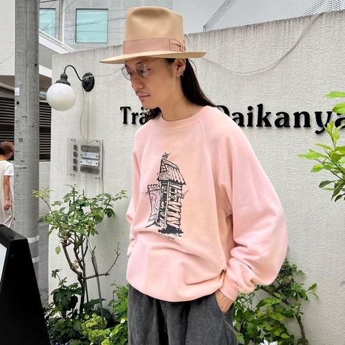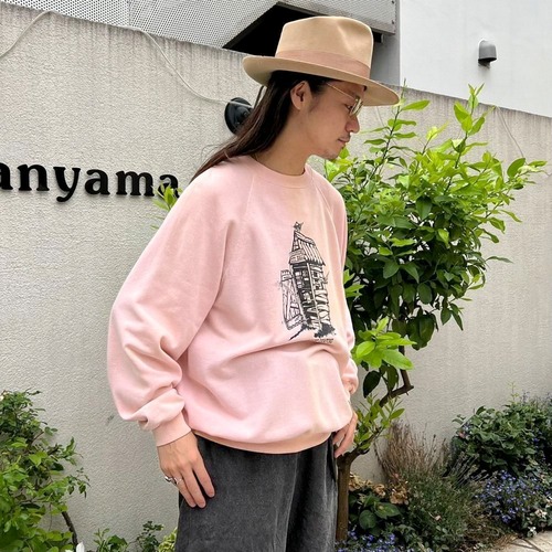 80s Creekside Camping souvenir sweatshirt. The contrast between the elegant pale pink body and the print of a toilet with flies in it is an interesting piece.