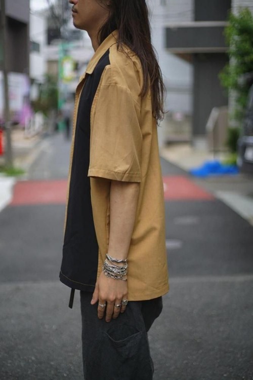 The L size has a moderately loose fit, creating a resort-like silhouette, and the flowing fabric gives it a light look.