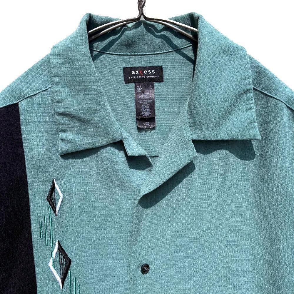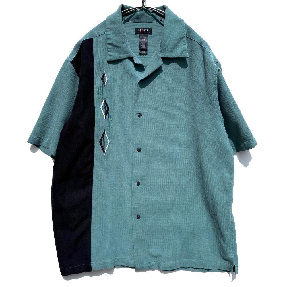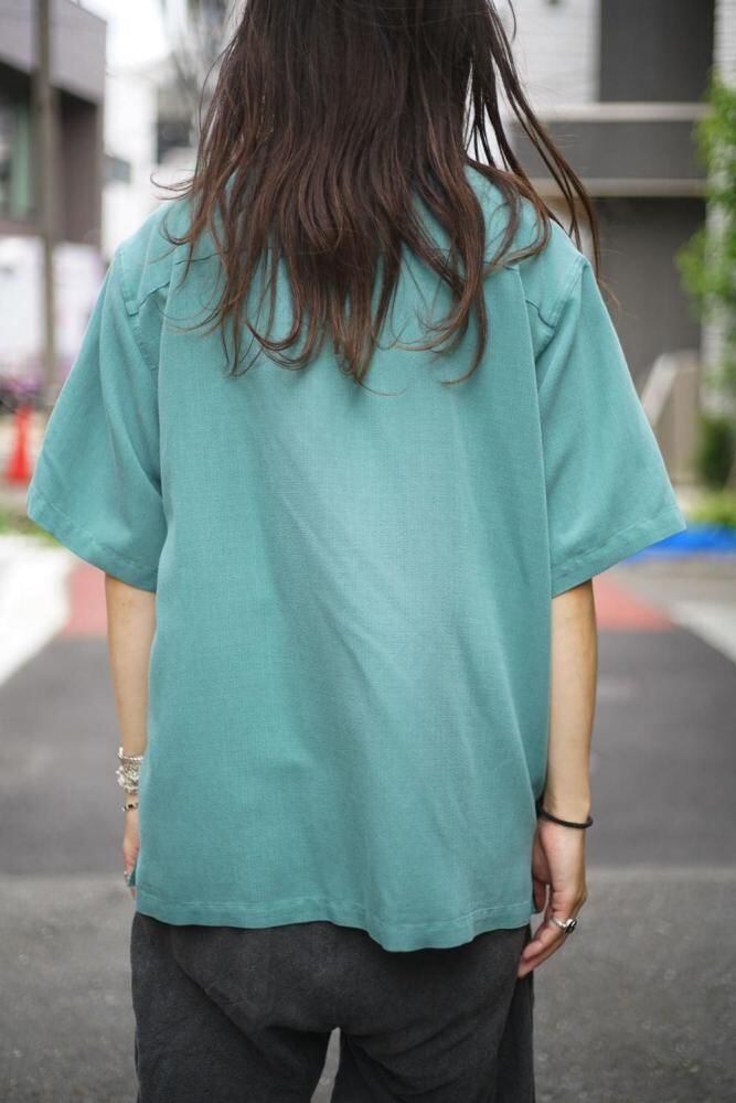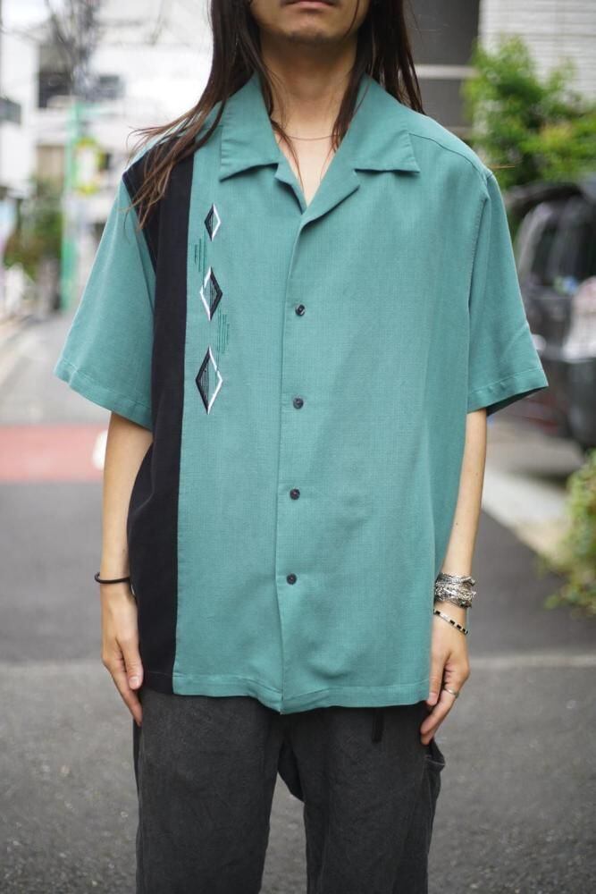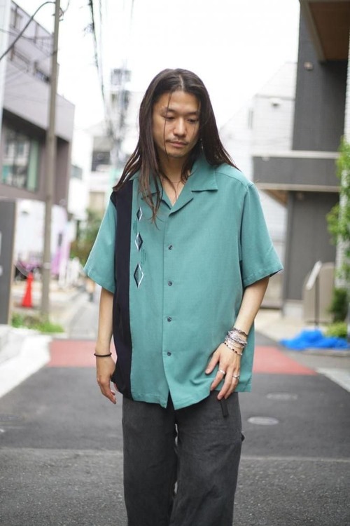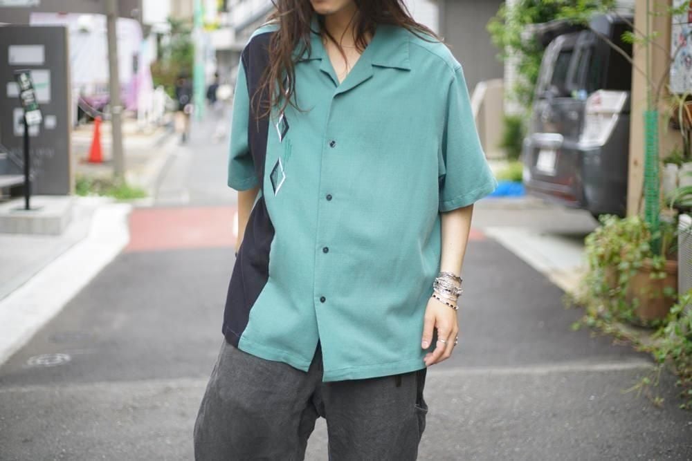 The front is paneled, giving it an ethnic design reminiscent of a Cuban shirt, and the embroidered emblem on the chest gives it a 50s vintage style, while the classic box silhouette adds to the atmosphere.