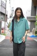 The L size has a moderately loose fit, creating a resort-like silhouette, and the flowing fabric gives it a light look.