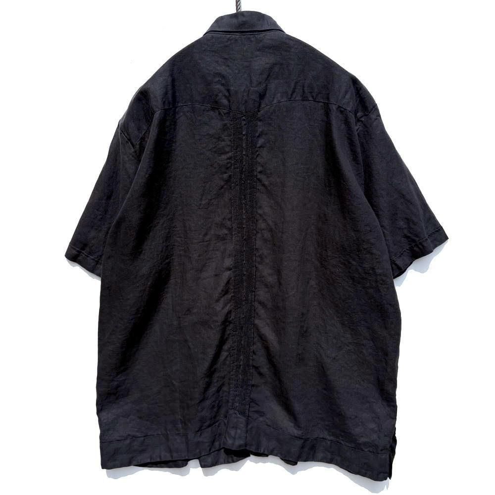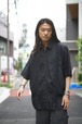 Although it is not stated, it is made of 100% linen and features a soft and refreshing texture, a moist feel, and a relaxed look with a drape.