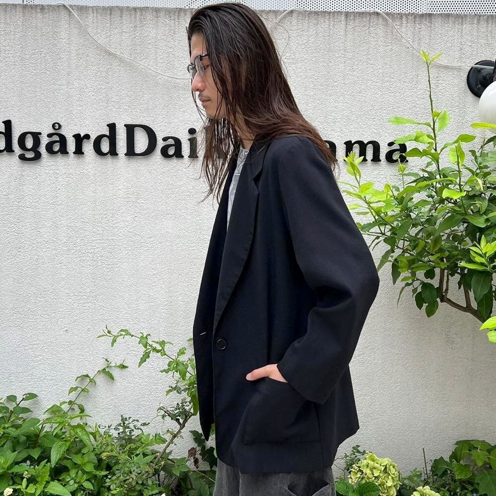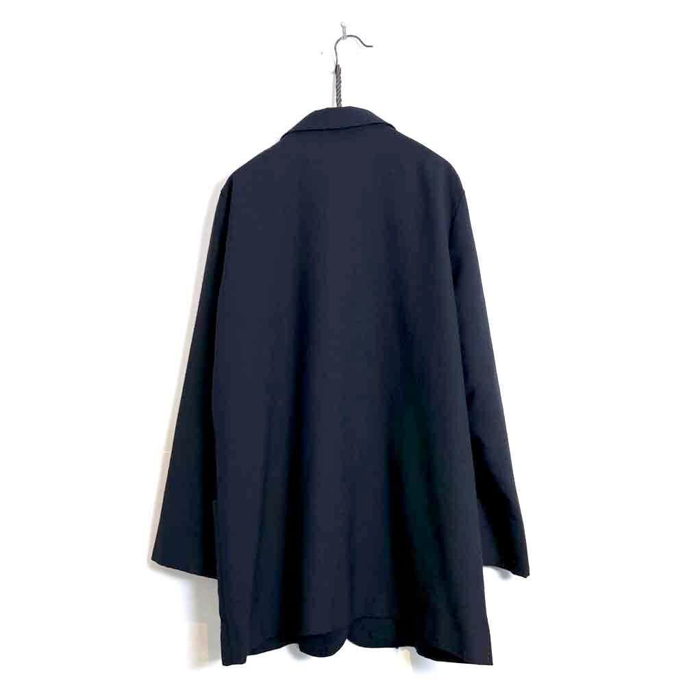 A light jacket from the 80s. Made from a single piece of lightweight rayon and polyester fabric, this light outerwear can be worn like a shirt. It comes in a versatile black color with a simple design that is not overly complicated.