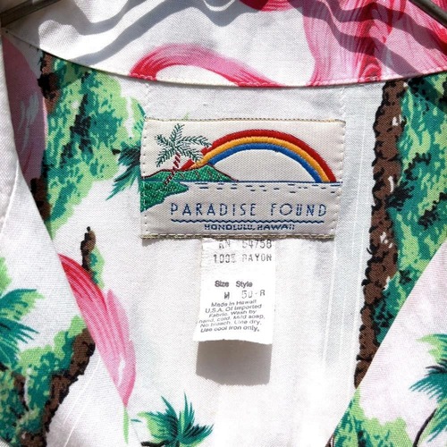 Made by PARADISE FOUND around the 1980s, this rayon aloha shirt has a soft and comfortable texture.