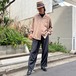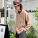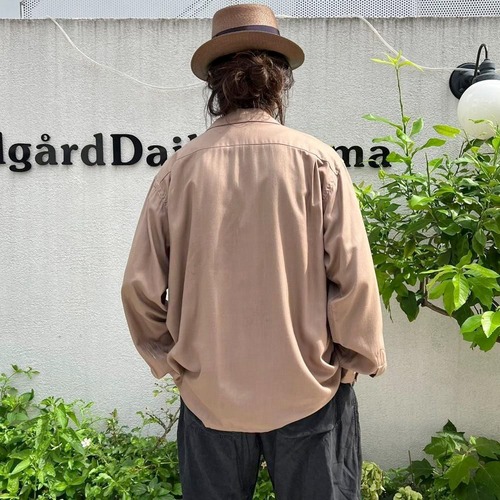 A 60s Palm Royal loop collar rayon shirt with a sophisticated and mature feel in a grayish brown color, with a high-quality embroidery on the chest. The size is L (16.5), and the loose silhouette is rare in vintage rayon shirts.