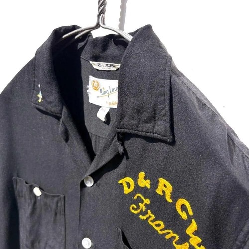 This is a vintage bowling shirt with a white tag made by King Louie around the 1960s.