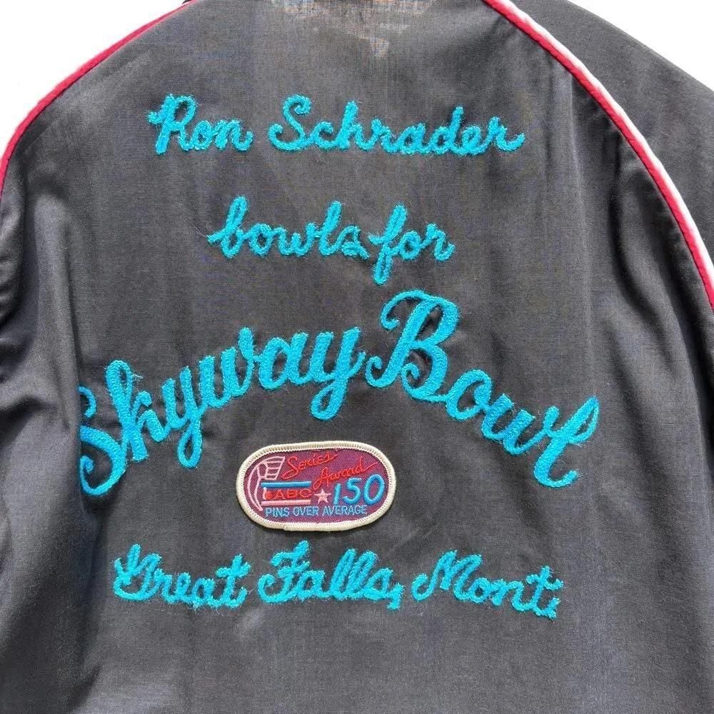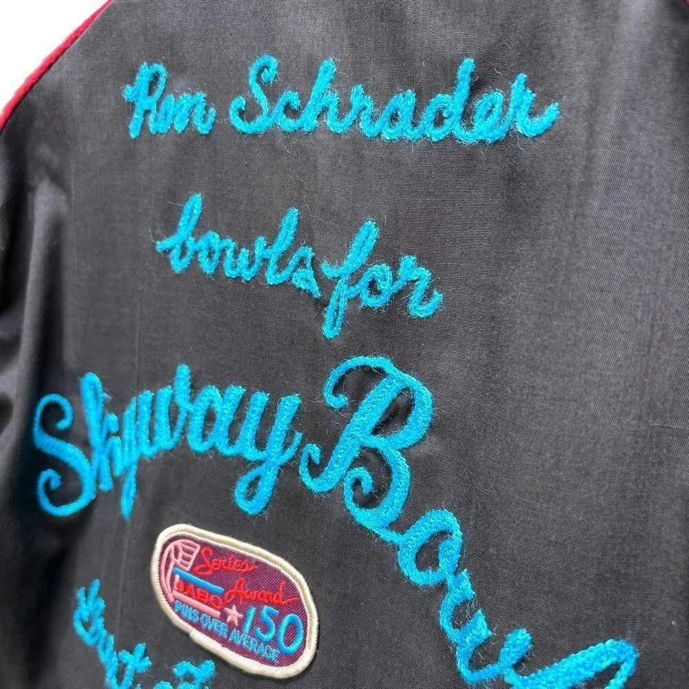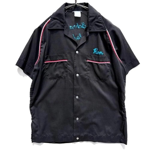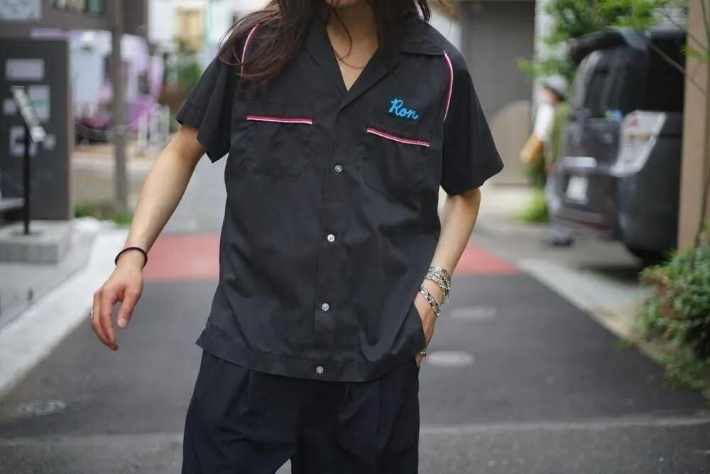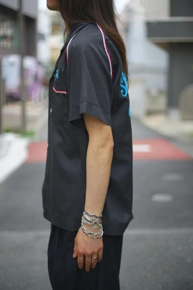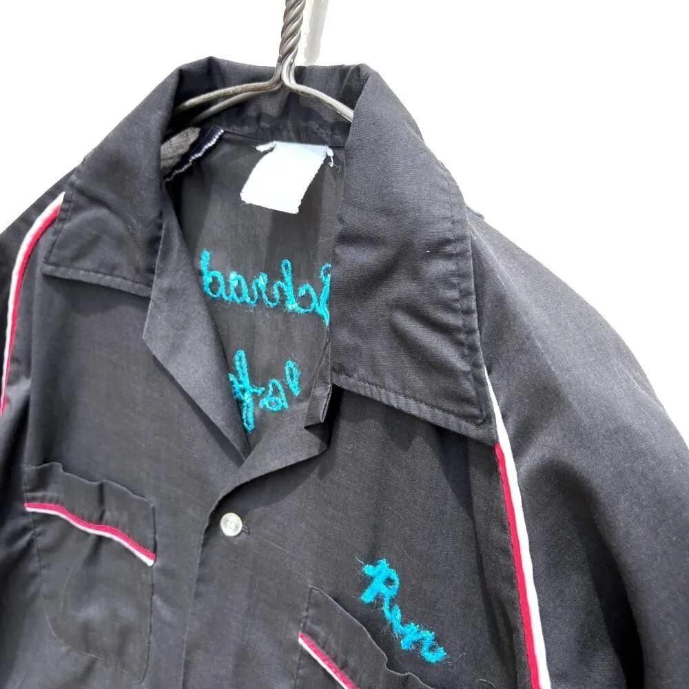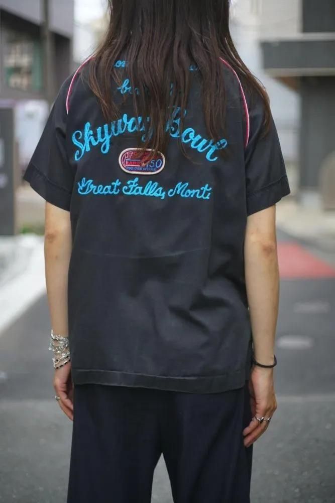 Although it is not stated, it is made of a thin, slightly crisp cotton-polyester blend fabric, and the back has a dense chain stitching that is unique to vintage items, giving it a luxurious feel.