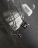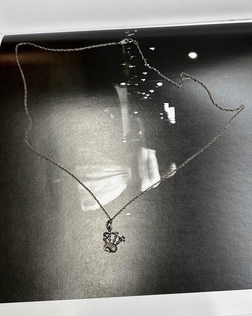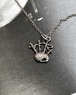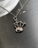 This bagpipe-shaped top necklace is modest in size and intricately crafted for elegance. Its cultural presence makes it perfect for layering. The chain is silver, and the top is likely alloy. As this is an old piece, it may show signs of aging, including tarnish and minor scratches. Please review the photos and understand the characteristics of vintage items before purchasing.