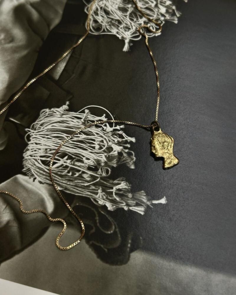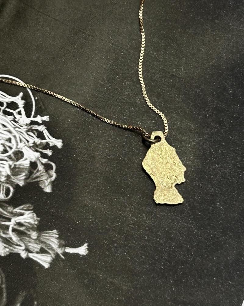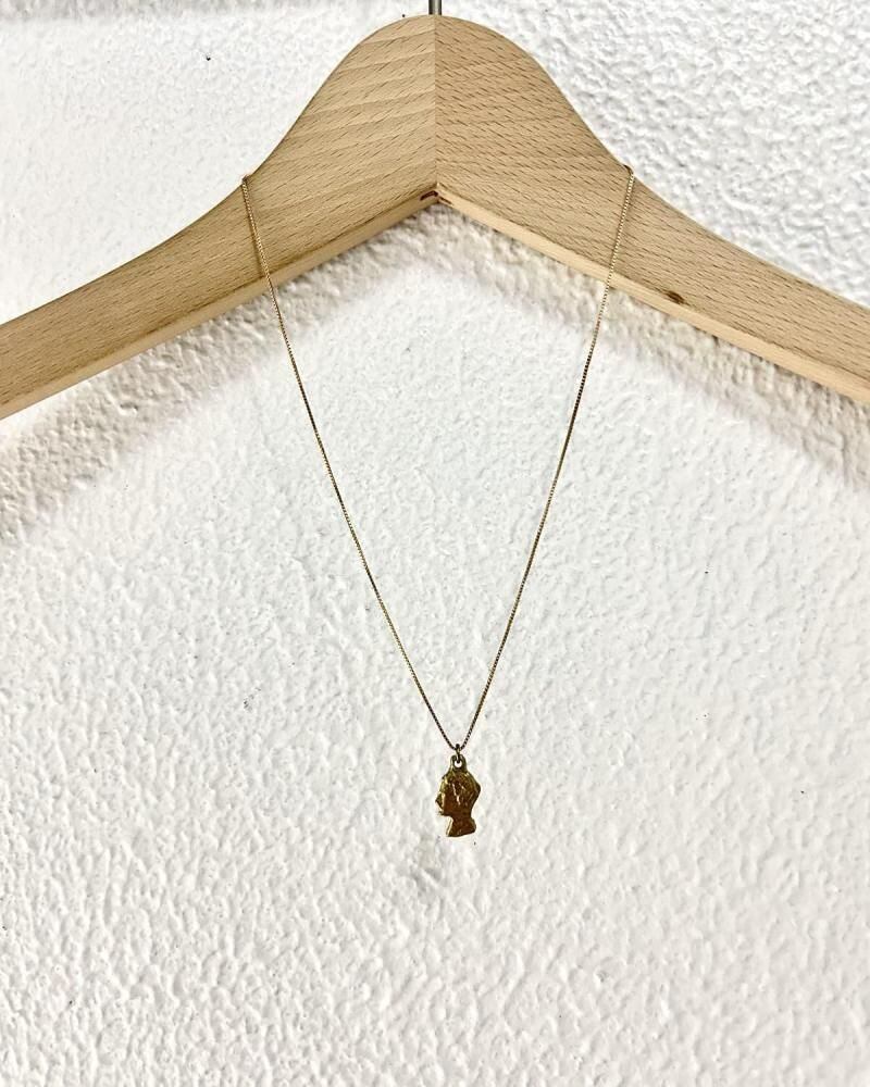 In Mexico, various symbols known as milagros (miracles) are often used as amulets, and this top necklace features a male face (perhaps a saint). It is said to be used to protect family and friends. The chain is silver (gold-plated), and the top is likely alloy. As this is an old item, it may show signs of aging, including tarnish and minor scratches. Please review the photos and understand the characteristics of vintage items before purchasing.