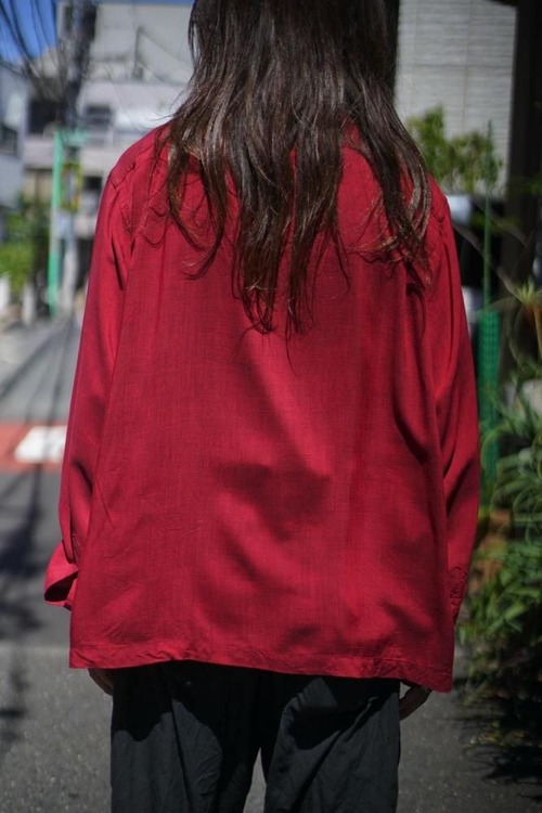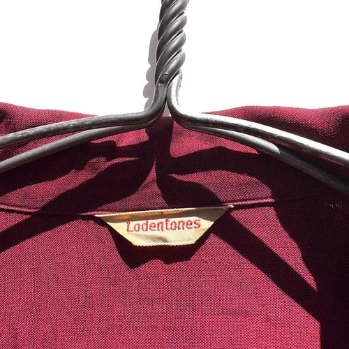 This is an open-collar rayon shirt made by Lodenttones around the 1960s.