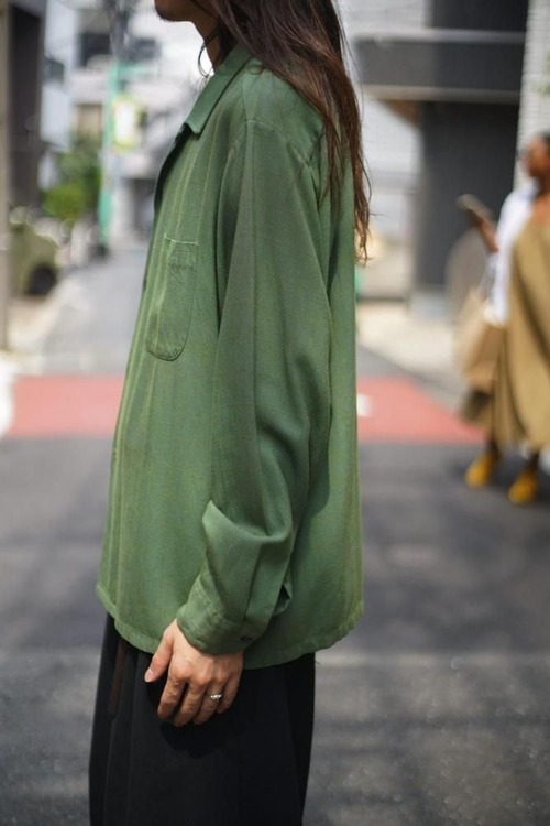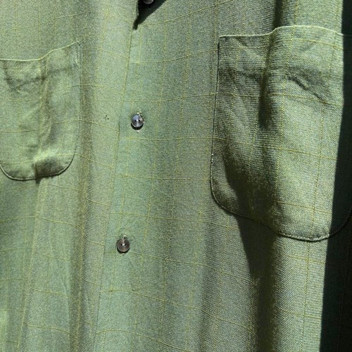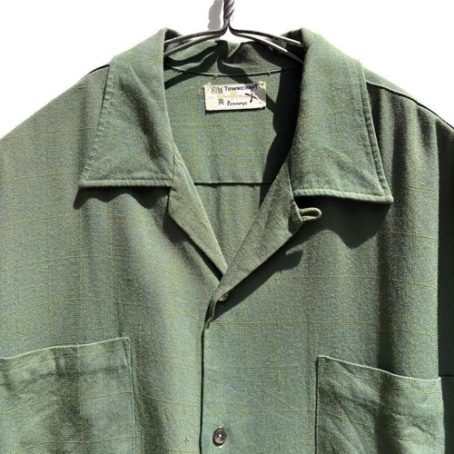 This is a rayon gabardine open-collar shirt made by TOWNCRAFT around the 1960s.