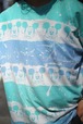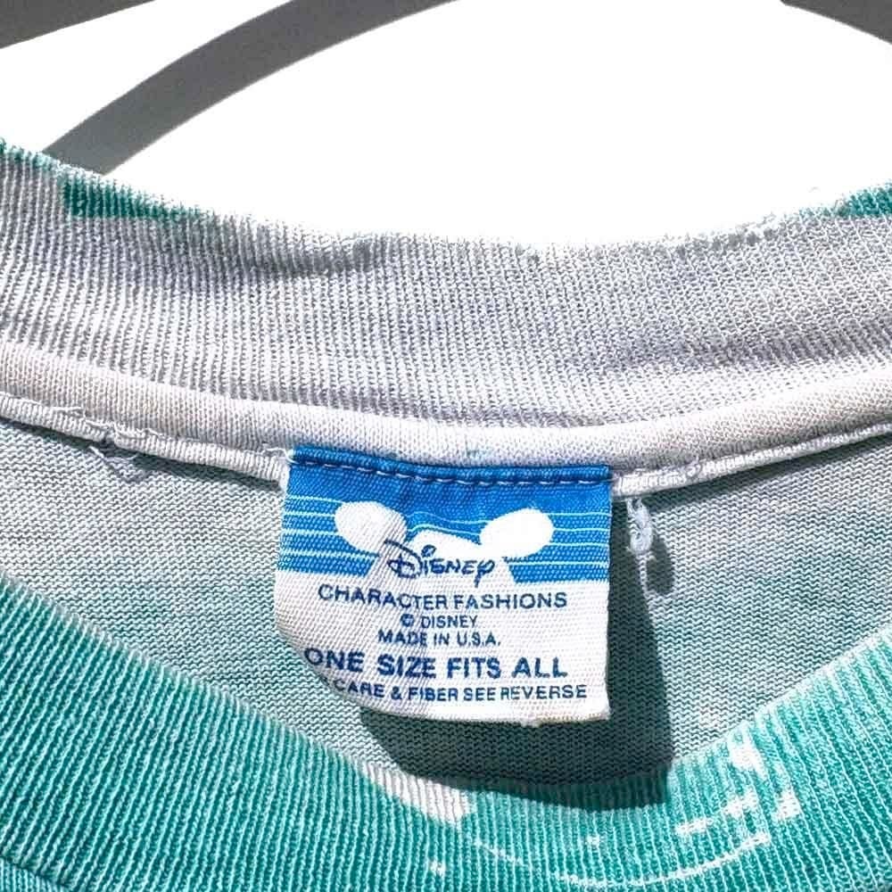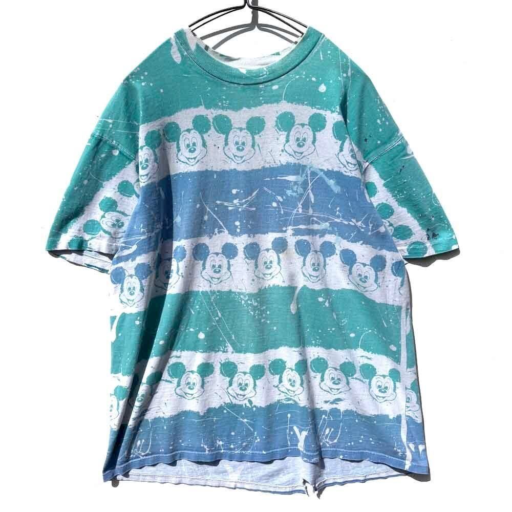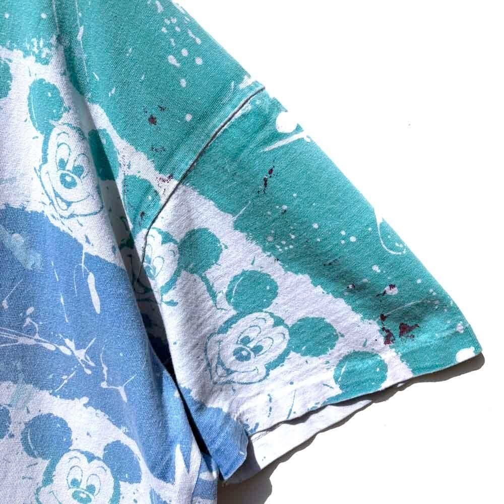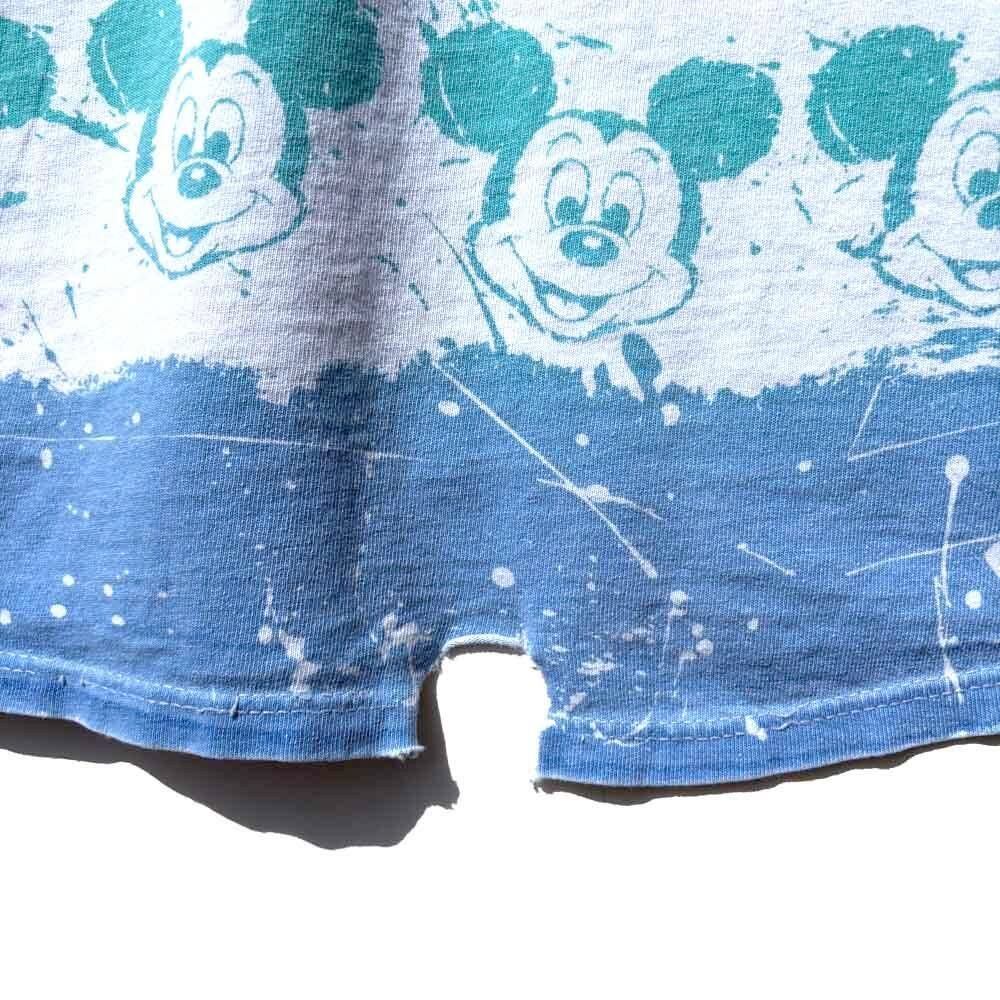 The faded vintage coloring and the rough design with Mickey Mouse lined up on a border and paint splattered on it make for an impressive piece, and the all-over print that is hand-printed even on the neck rib makes this an extremely rare piece.