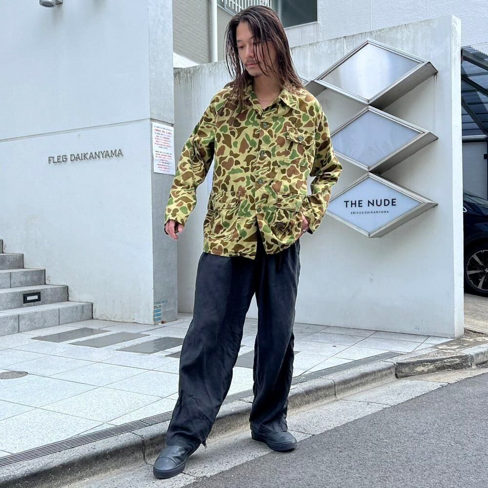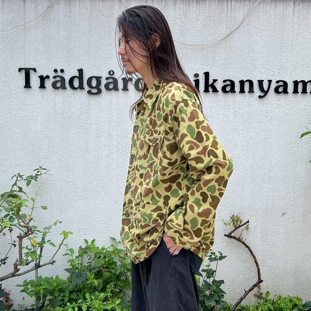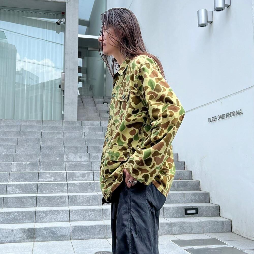 This 80s Duck Hunt camouflage jacket features a cute, rounded, soft camouflage pattern reminiscent of Duck Hunt camo. The lightweight fabric feels like a shirt, and you can roll up the sleeves to wear it even in hot weather. Its a light jacket with a comfortable fit and a great silhouette.