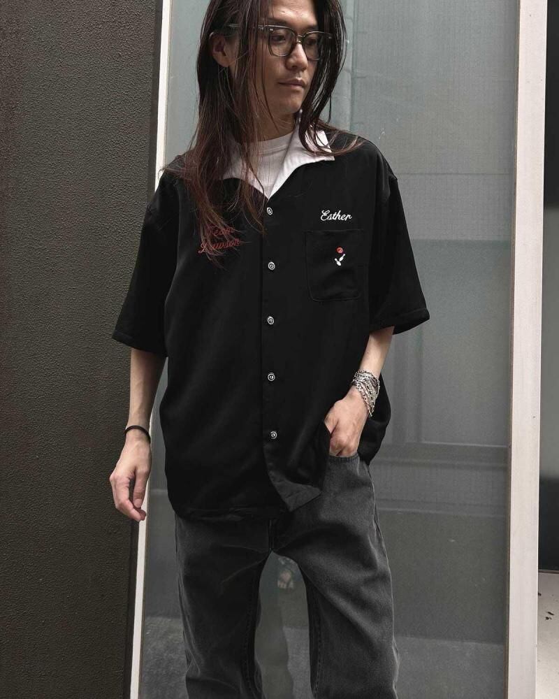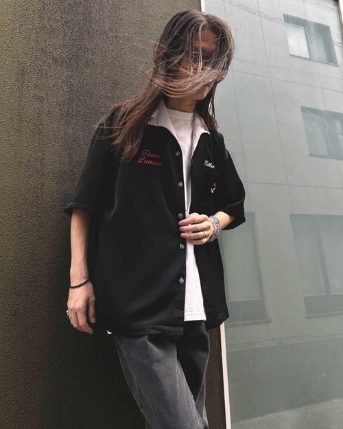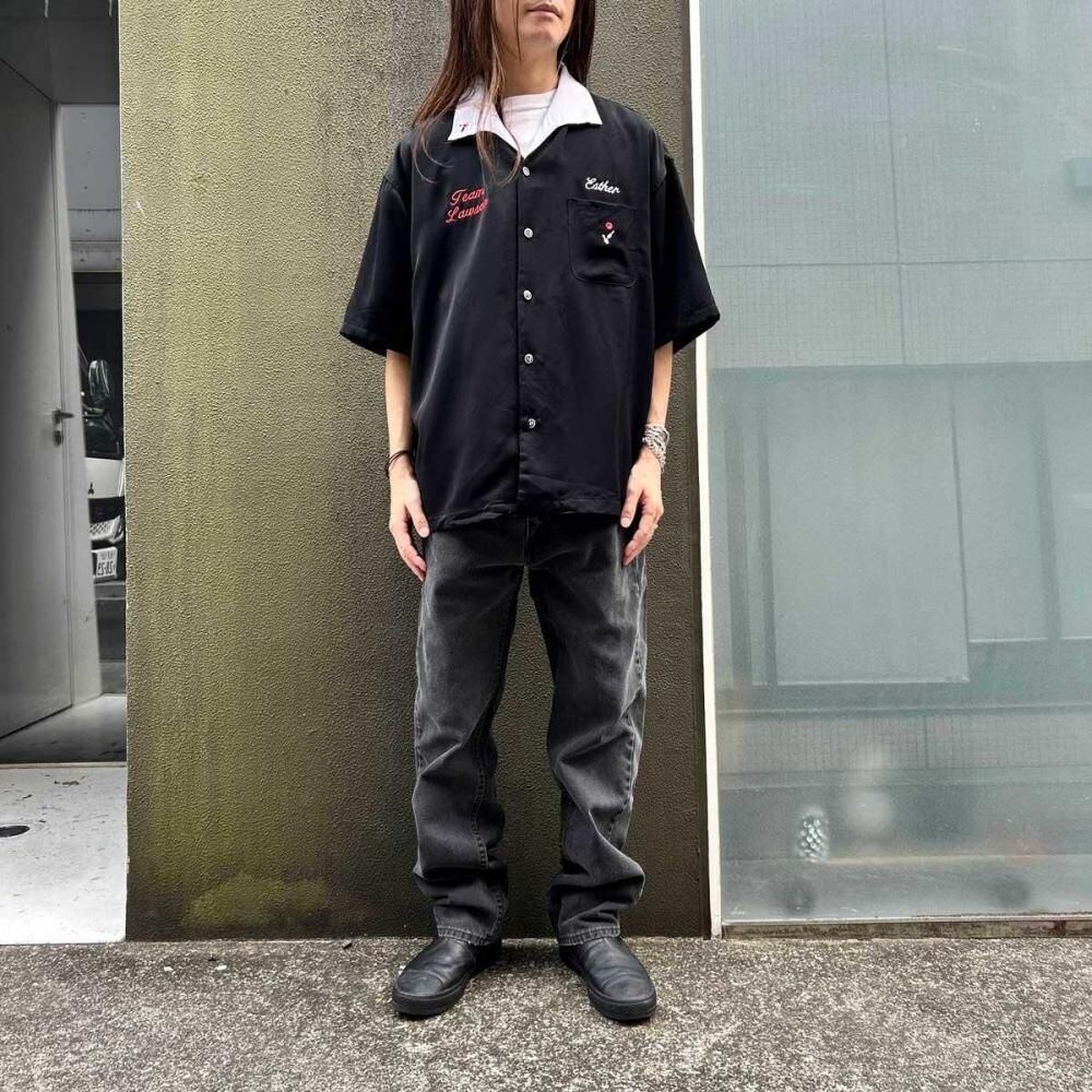 This bowling shirt dates back to the 1990s. Its monotone color scheme, Italian collar, and simple embroidery create a rude look. Its made of a medium-weight polyester fabric for excellent durability. Its a size L, but it offers a well-balanced silhouette with width and a length not found in older vintage pieces. As this is an old item, there may be occasional signs of aging. Please check the photos and understand the characteristics of vintage items before purchasing.