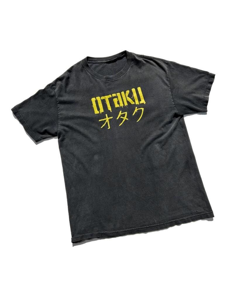 This T-shirt dates from the late 1990s to early 2000s. The stencil-style print, typical of this era, stands out against the faded, inky black body. It exudes a cultured vibe without being overly pretentious or childish, making it a rare find even among vintage clothing. Its likely a size L, with a comfortable, relaxed silhouette. As this is an old item, there may be some minor wear over time. Please check the photos and understand the characteristics of vintage clothing before purchasing.