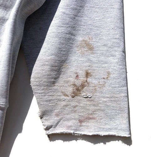 This is a rare item with a USA-made rugged sweatshirt body and such a lovely distressed look that you wont find anywhere else.