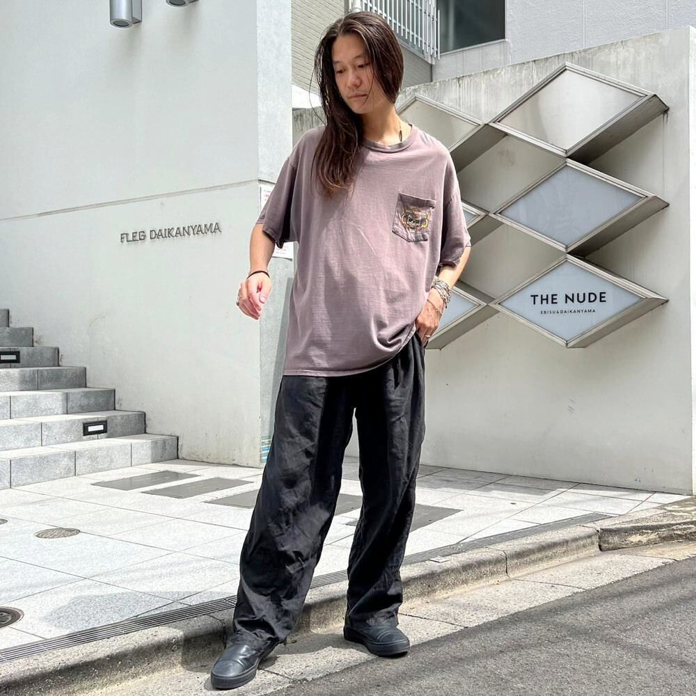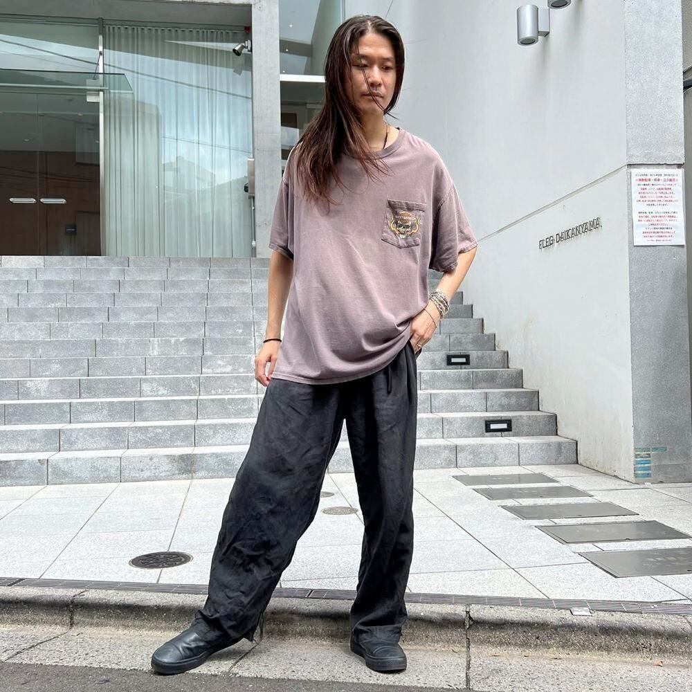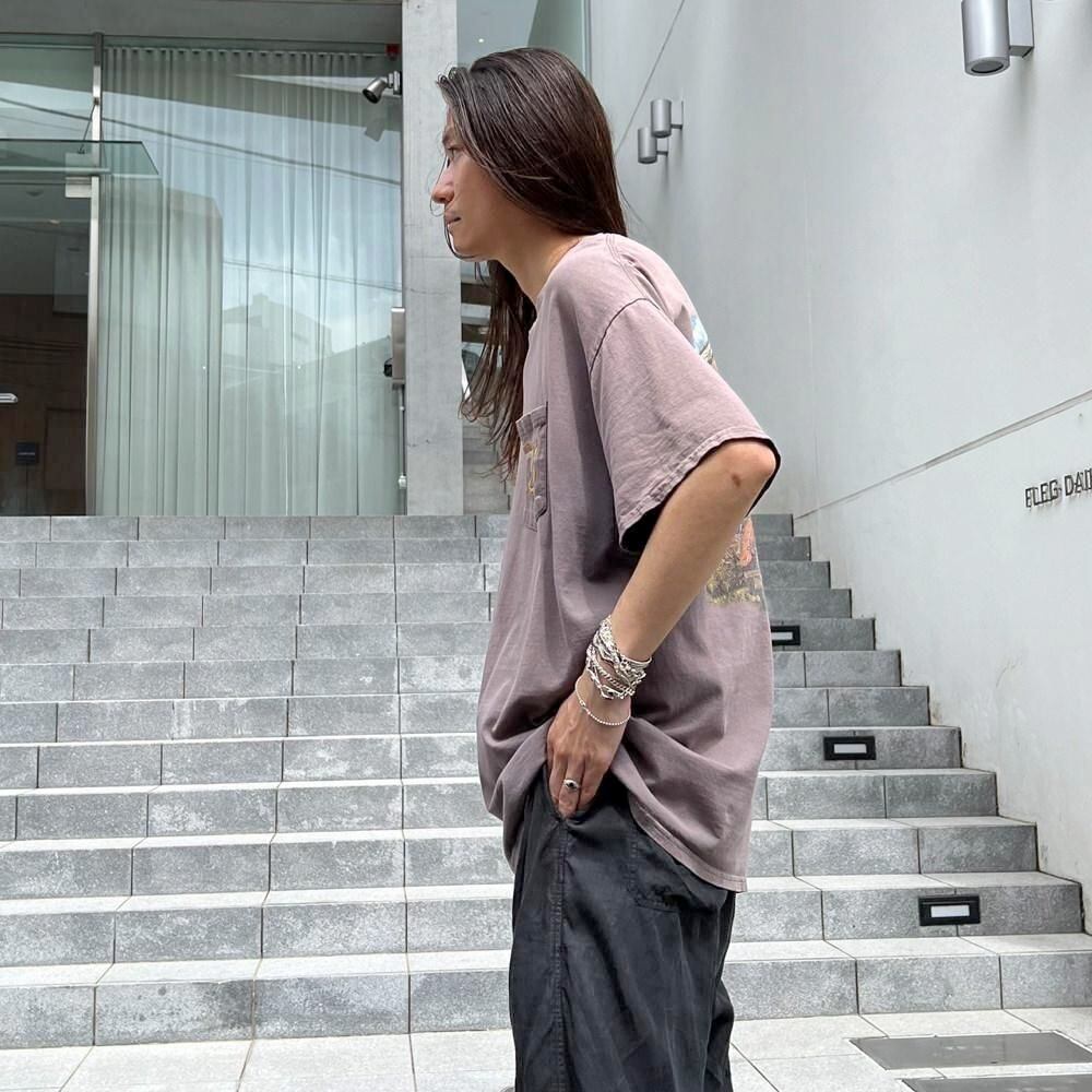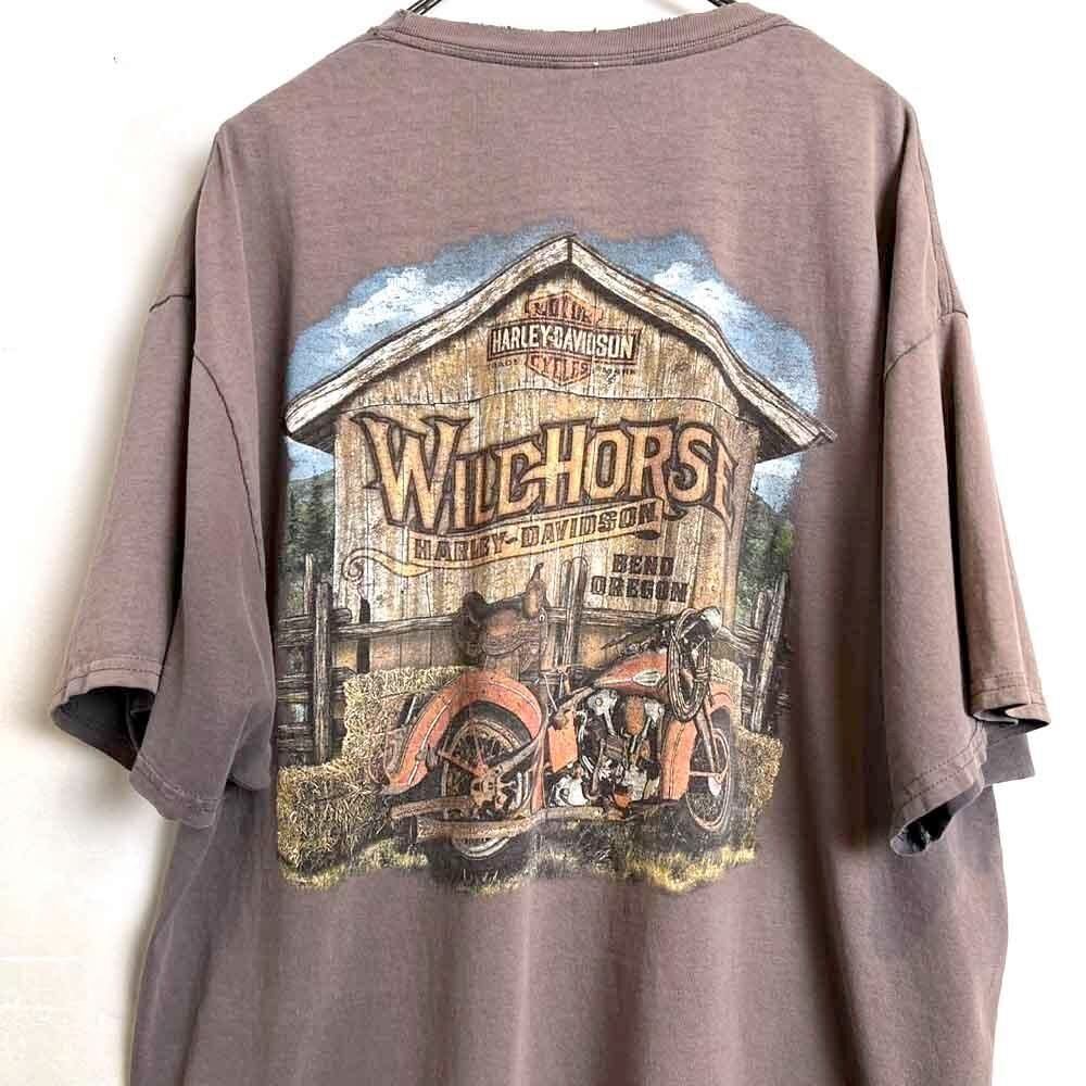 This Harley-Davidson 90s pocket T-shirt features a unique azuki gray body with a chest pocket and a printed design on the back. It has a relaxed silhouette and a comfortable fit.
