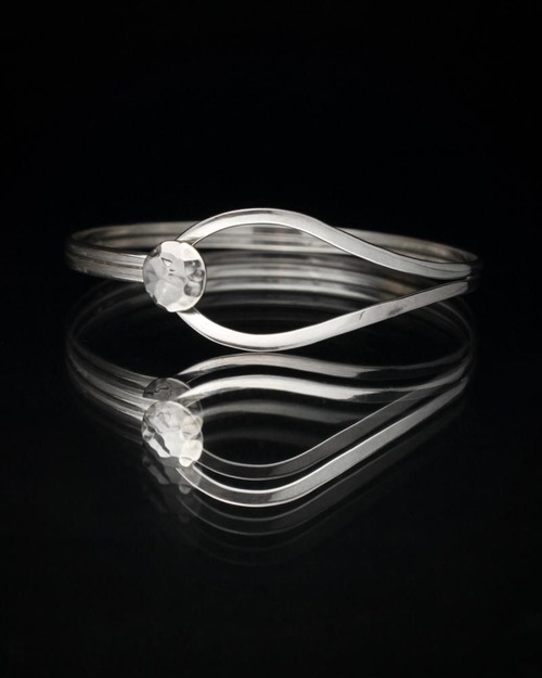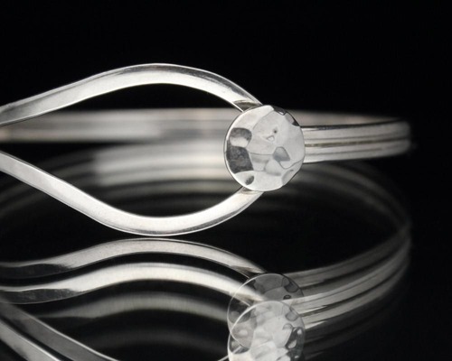 Made in Mexico, one of the worlds leading silver mining regions and a long-standing magnet for silver artists and artisans. This vintage piece has been gaining attention in recent years for its unique evolution, showcasing influences ranging from Aztec indigenous elements to Native American jewelry, with influences from the American Southwest, to sophisticated Scandinavian minimalist designs. This is a minimalist bangle that wraps around the wrist, constructed with just two wires. The hammered ends add a touch of elegance. It is stamped 925, Mexico. Due to its age, there may be some scuffing. Please review the photos and understand the characteristics of vintage jewelry before purchasing.