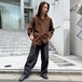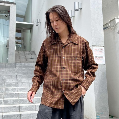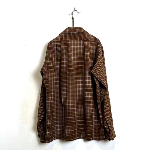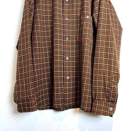 This 1960s loop-collar wool shirt from Pendletons premium line, Ser Pendleton, is made from a smooth, lighter wool fabric than regular Pendleton wool. Its versatile and suitable for all seasons. The masculine brown, black, and yellow check pattern creates a stylish look. The relaxed fit makes for a comfortable silhouette.
