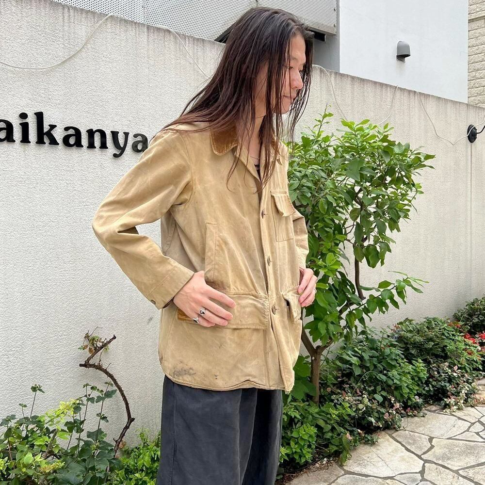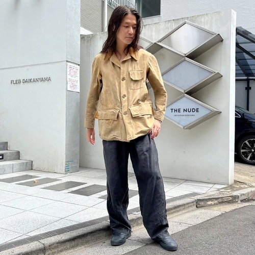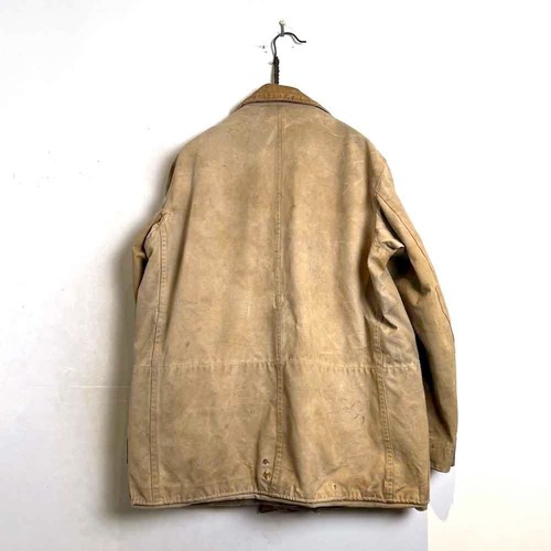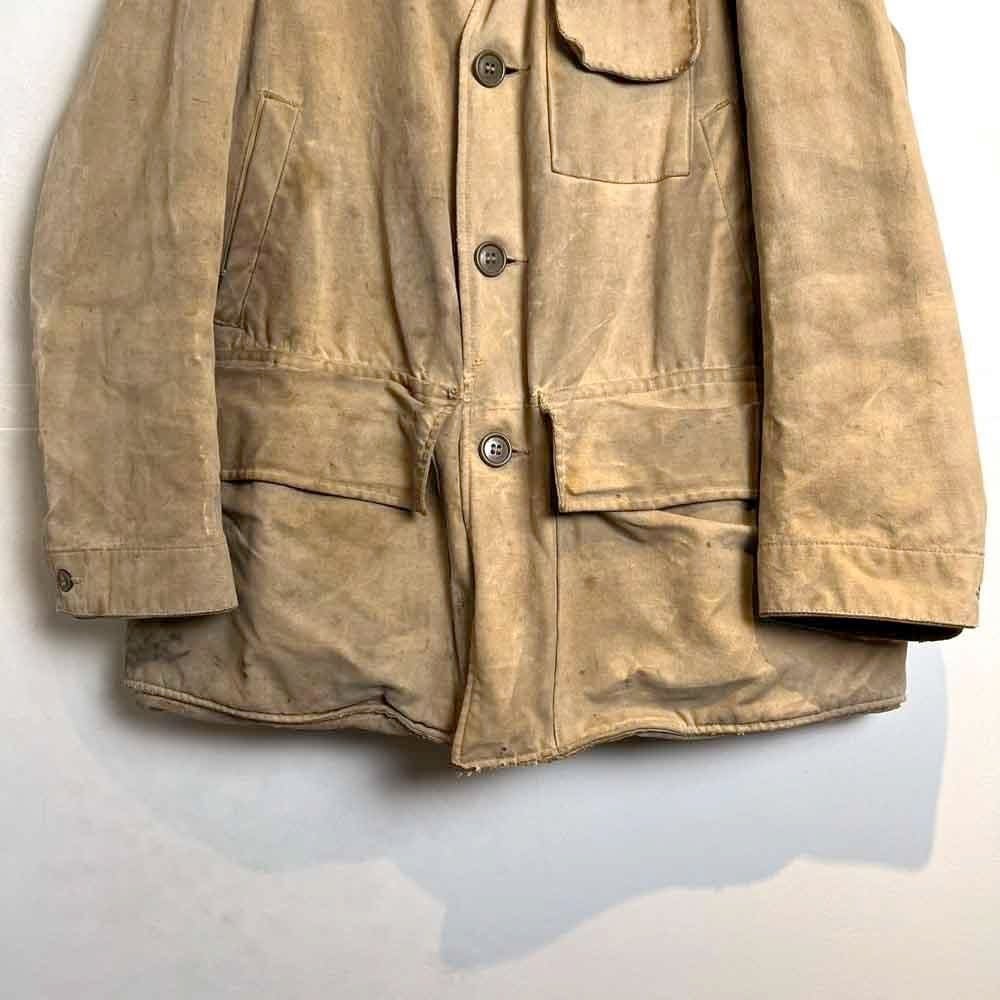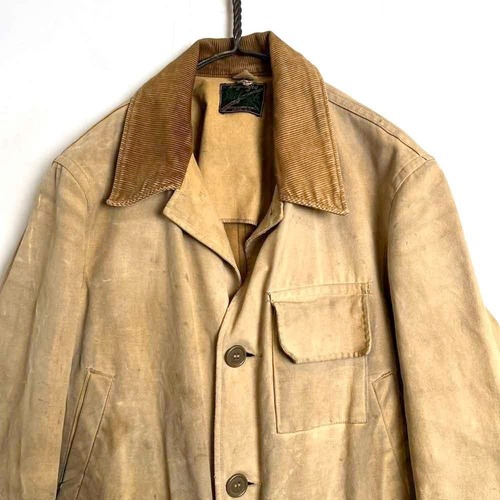 This hunting jacket from the 1930s and 1940s features a beautifully aged duck fabric that creates a truly stylish look. Its rugged, masculine feel is complemented by a well-fitting sizing and a beautiful silhouette. Details unique to vintage hunting jackets include a Talon zipper closure on the inner game pocket.