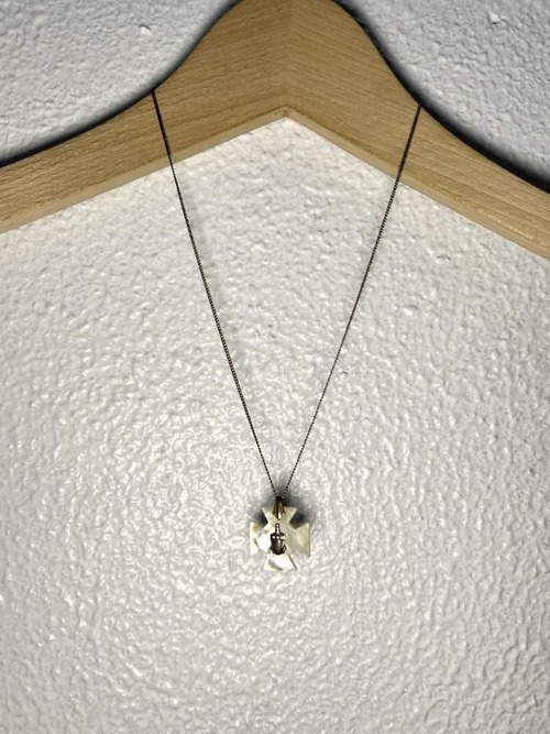 This Odd Fellows top necklace dates from the 1930s. The iron cross-shaped top, which fell out of use during the war, features a hollowed-out shell, making it a rare design. Its simple and elegant design is contrasted with metal versions. The chain is likely silver or gold-plated. Due to its age, it may show signs of aging, including tarnish and minor scratches. Please review the photos and understand the characteristics of vintage items before purchasing.