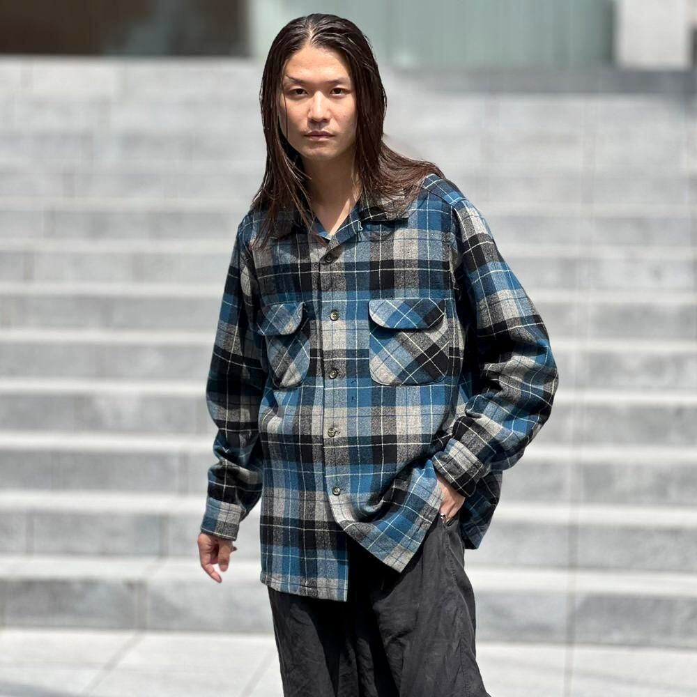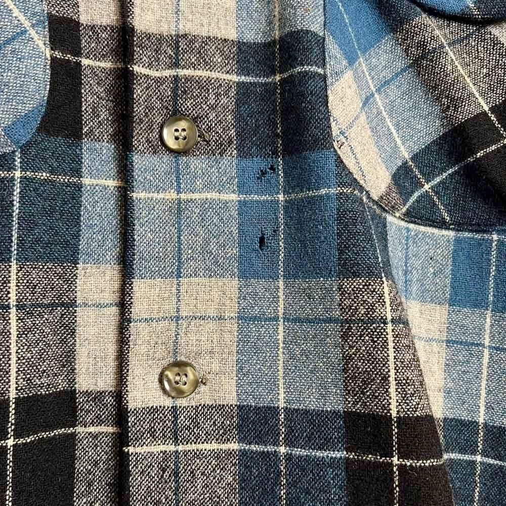 This vintage Pendleton shirt from the 50s is a rare, loose fit thats hard to find these days. It features a stunning check pattern in blue, gray, and black.
