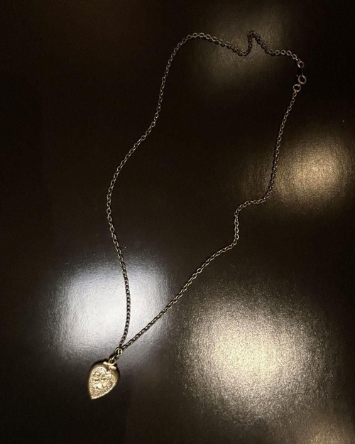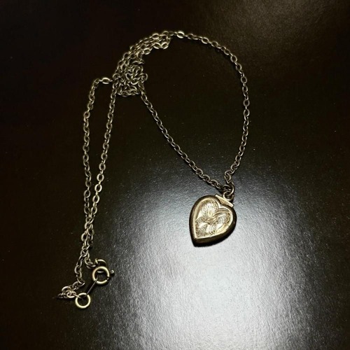 This item was given as a gift by couples during wartime, from the early 1900s through World War II. This small piece has a subtle aged look. The top is likely a plated alloy, and the chain is brass. As it is an old piece, there may be some tarnish and minor scratches. Please review the photos and understand the characteristics of vintage items before purchasing.