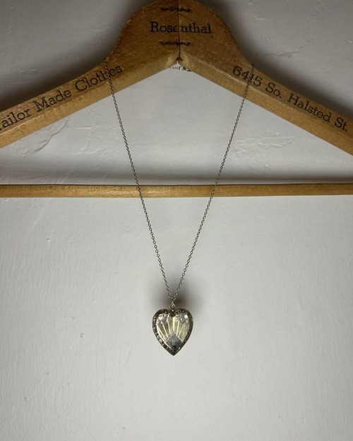 This item was a gift given by couples during wartime, from the early 1900s through World War II. This is a locket-style necklace with a large top and signet-style engraving that resembles sunlight, and elegant side engraving. The rare sterling body and gold-plated finish typical of this era give it a refined look. The chain is made of alloy and gold-plated. As this is an old item, there may be tarnish and minor scratches due to age. Please review the photos and understand the characteristics of vintage items before purchasing.