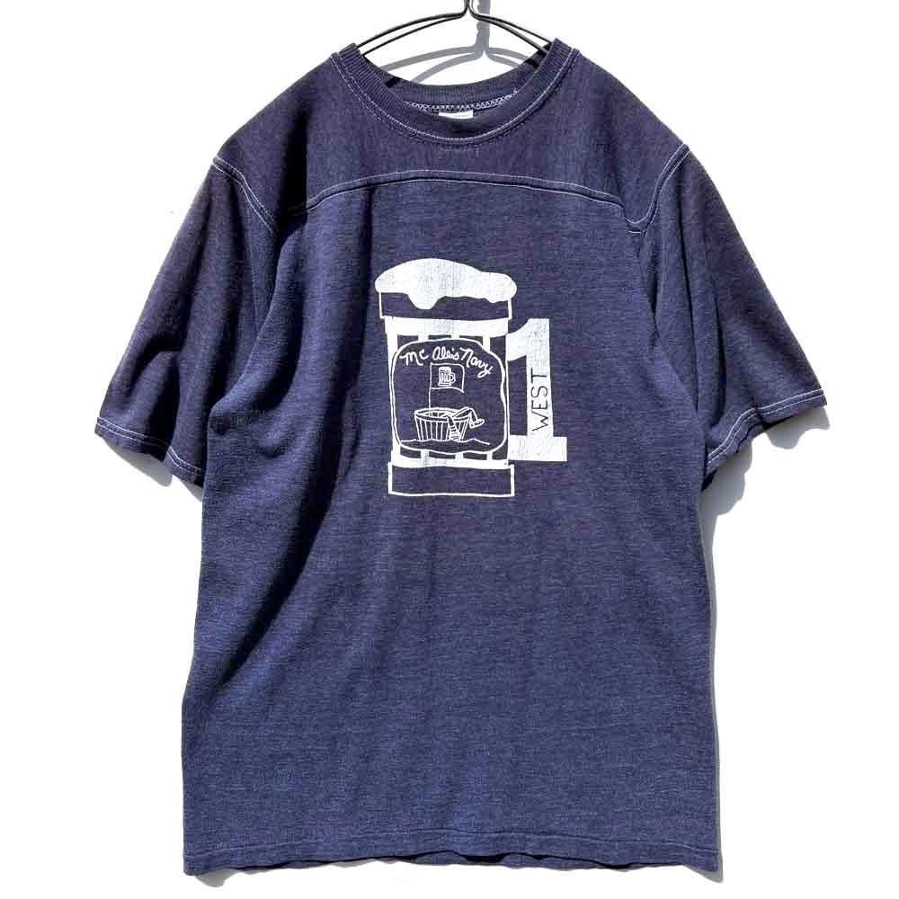 Made from a 50/50 cotton/polyester fabric, this piece has a soft, flowing texture, and the faded coloring and aging that comes with age give it the depth that is unique to vintage items.
