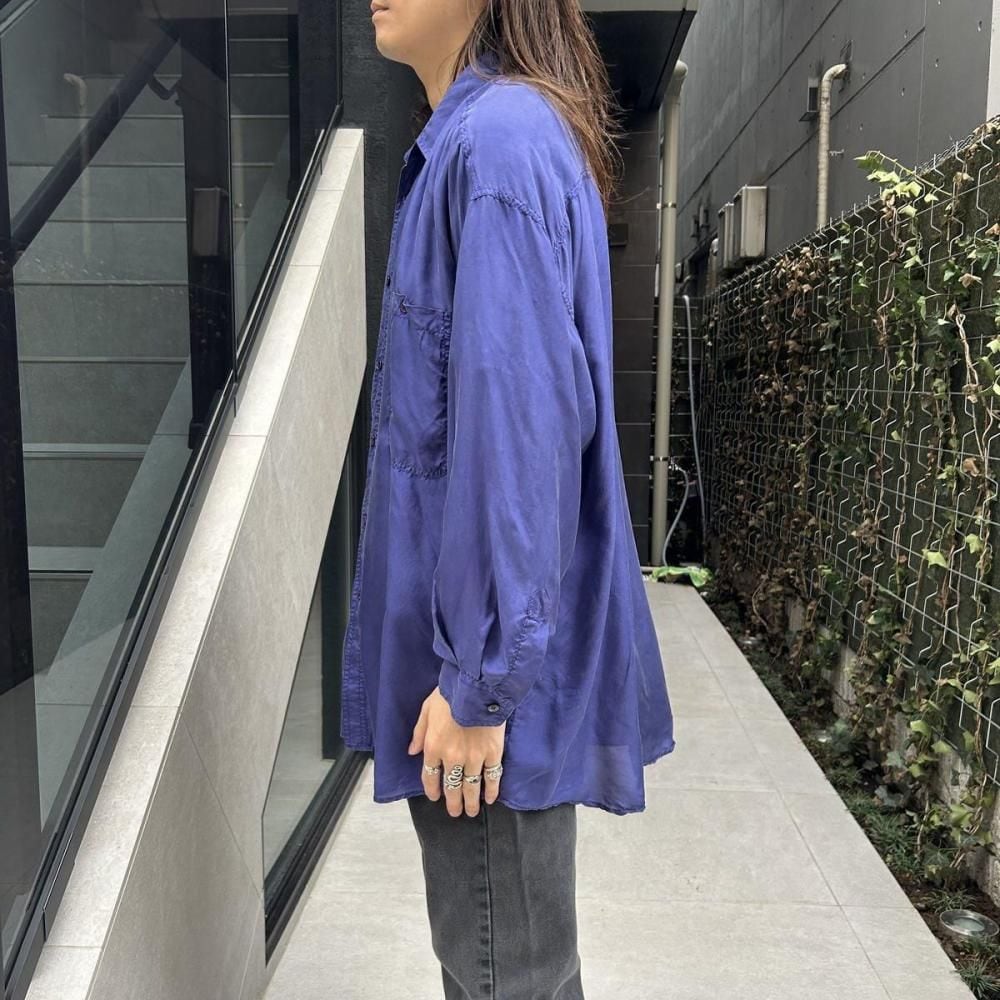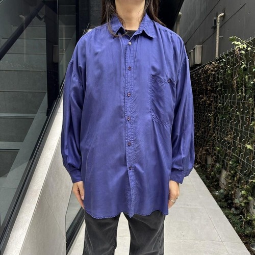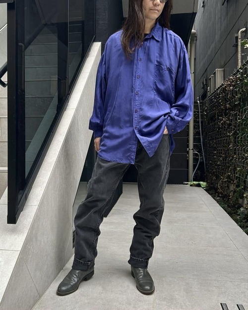 This long-sleeved silk shirt dates back to the 1990s. Its muted purple color is elegant yet eye-catching. The dropped shoulders create a relaxed silhouette, making it feel light and airy. It seems like there are fewer and fewer long-sleeved shirts available these days. As this is an old item, there may be some slight fading over time. Please check the photos and understand the characteristics of vintage items before purchasing.