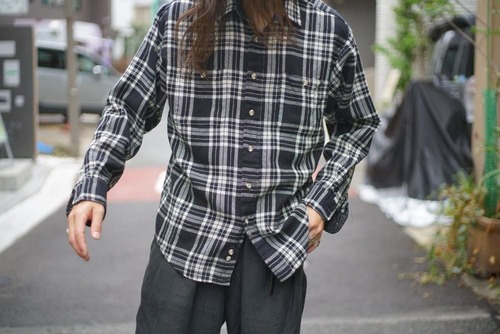 The retro check pattern creates a great atmosphere, and while it can be worn loosely and casually, the muted colouring unique to vintage items gives it a heavy feel.