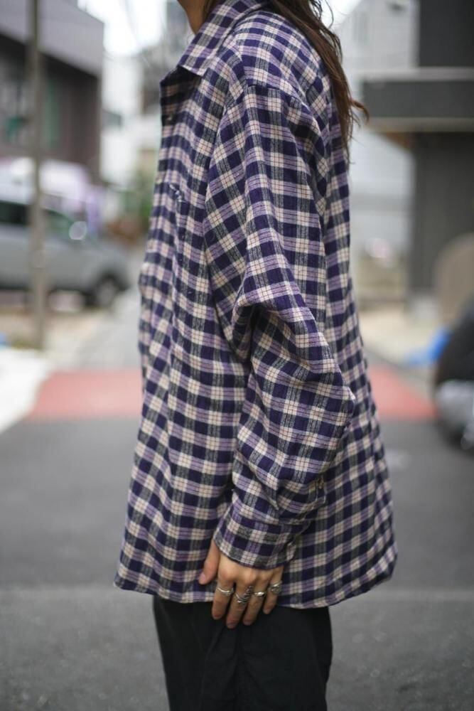 The retro check pattern creates a great atmosphere, and while it can be worn loosely and casually, the muted colouring unique to vintage items gives it a heavy feel.