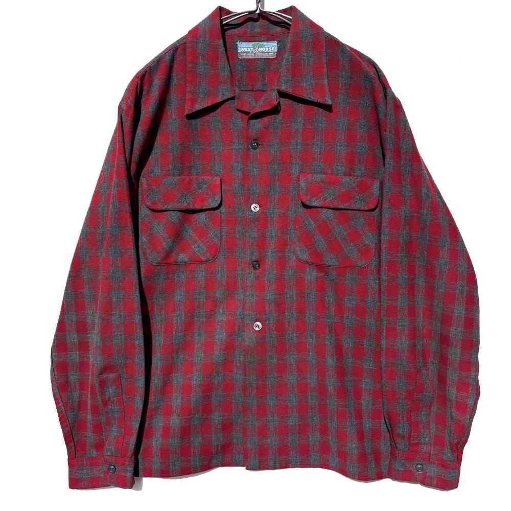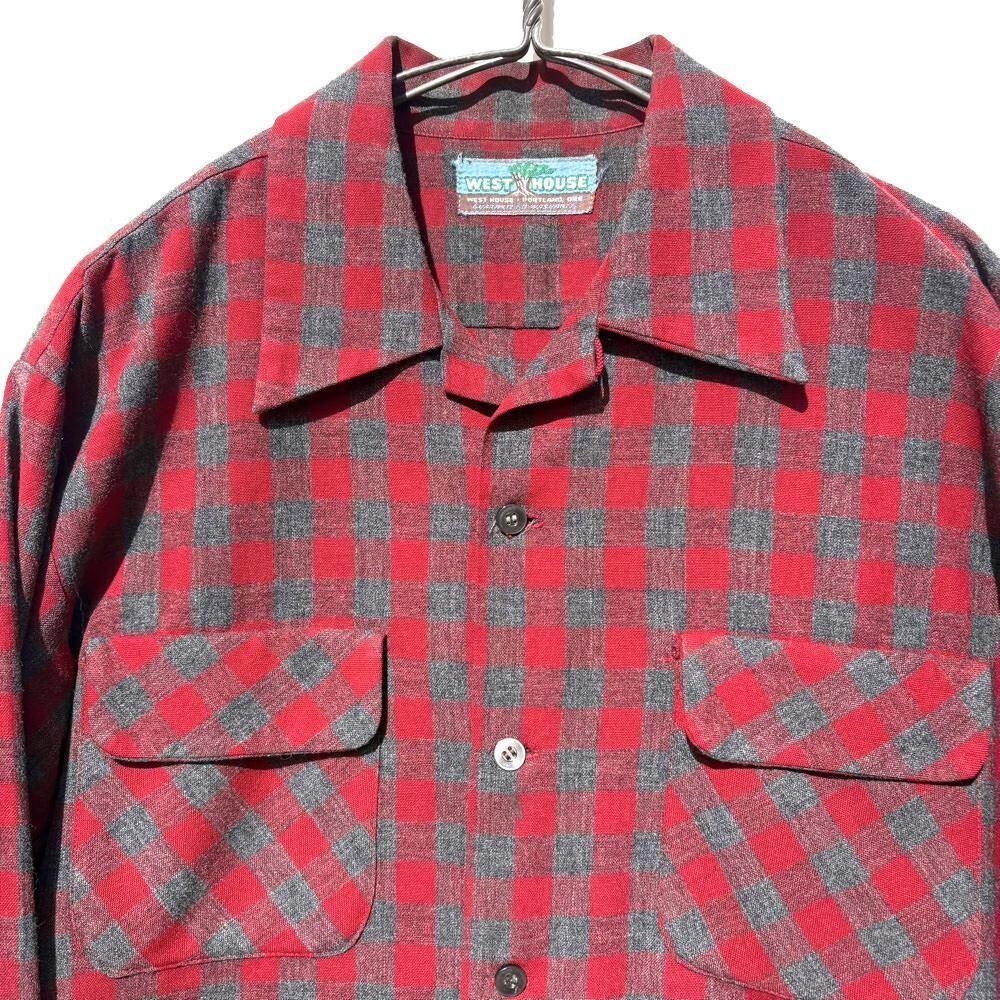 This is a vintage open-collar wool shirt made by WEST HOUSE around the 1960s.