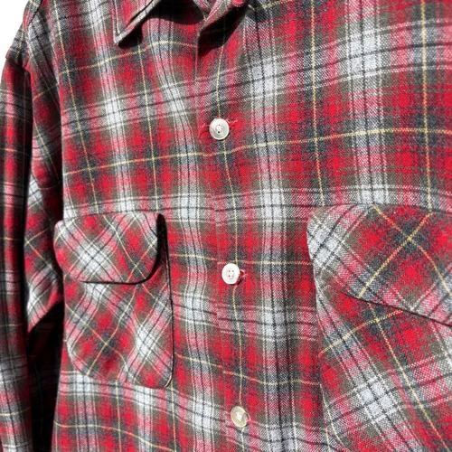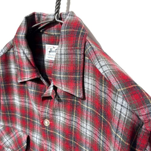This is a vintage open-collar wool shirt made by Hunter around the 1960s.
